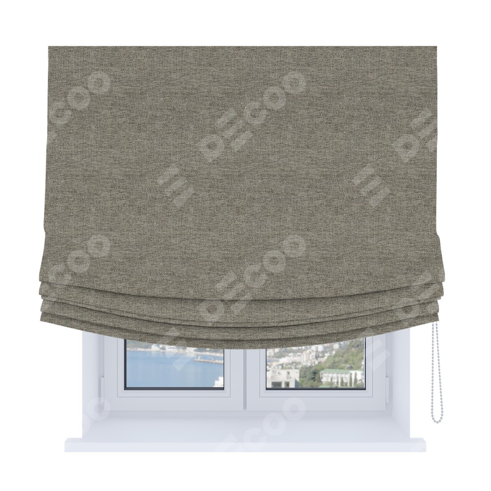 Римская штора Soft производителя «Cortin», используется для проёма, пошита из ткани стиф димаут серо-коричневый, артикул ткани 44028. Имеет универсальный механизм и подходит для монтажа: на потолок, на стену и в нишу. В отличие от стандартных римских штор, римская штора Soft не имеет горизонтальных вставок и нижнего отвеса. Это позволяет ткани произвольно драпироваться в свободные мягкие складки.