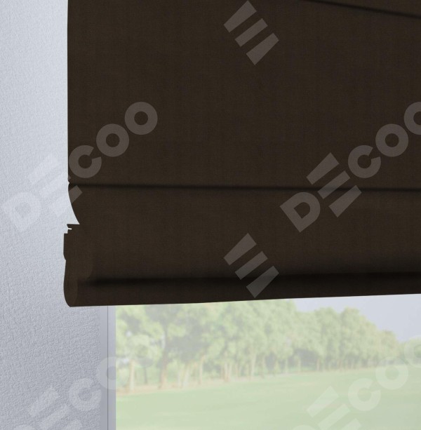Римская штора производителя «Cortin», используется для проёма, пошита из ткани вельвет тёмно-коричневый, артикул ткани 30991. Данная модель пошита на петлях, комплектуется на выбор круглым карнизом и подходит для монтажа на стену. Римская штора на петлях имеет простую систему регулировки высоты, отличительным преимуществом данной модели является простой способ монтажа. Достаточно повесить ее на трубу и штора готова!