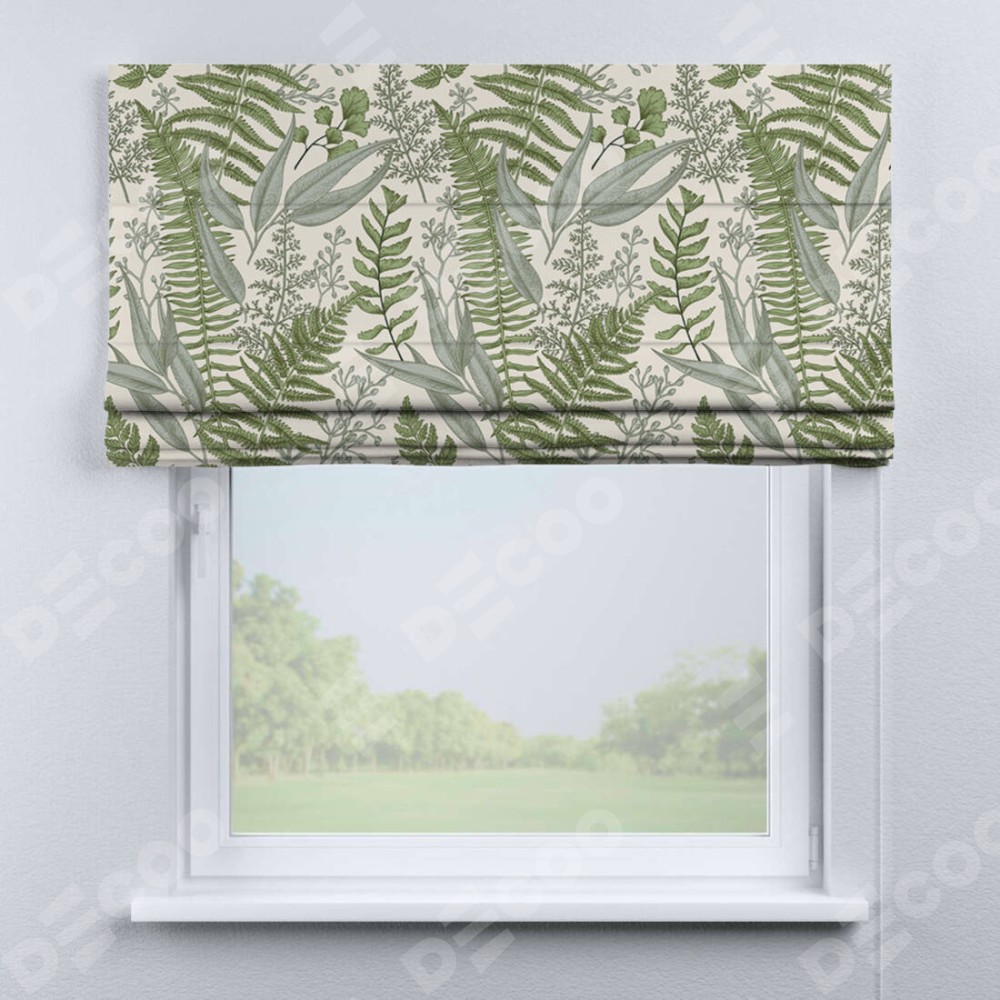 Римская штора производителя «Cortin», используется для проёма, пошита из ткани блэкаут с нанесением сублимационной печати «Тенистый лес». Имеет универсальный механизм и подходит для монтажа: на потолок, на стену и в нишу.