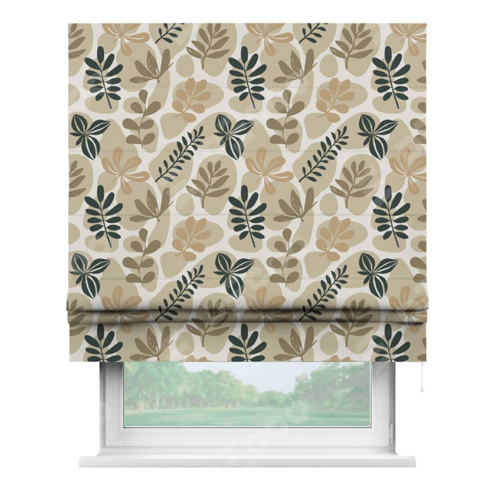 Римская штора производителя «Cortin», используется для проёма, пошита из ткани блэкаут с нанесением сублимационной печати «Бежевый сад». Имеет универсальный механизм и подходит для монтажа: на потолок, на стену и в нишу.