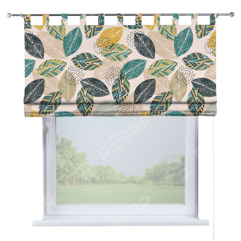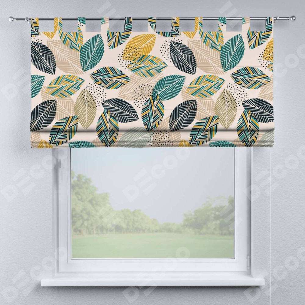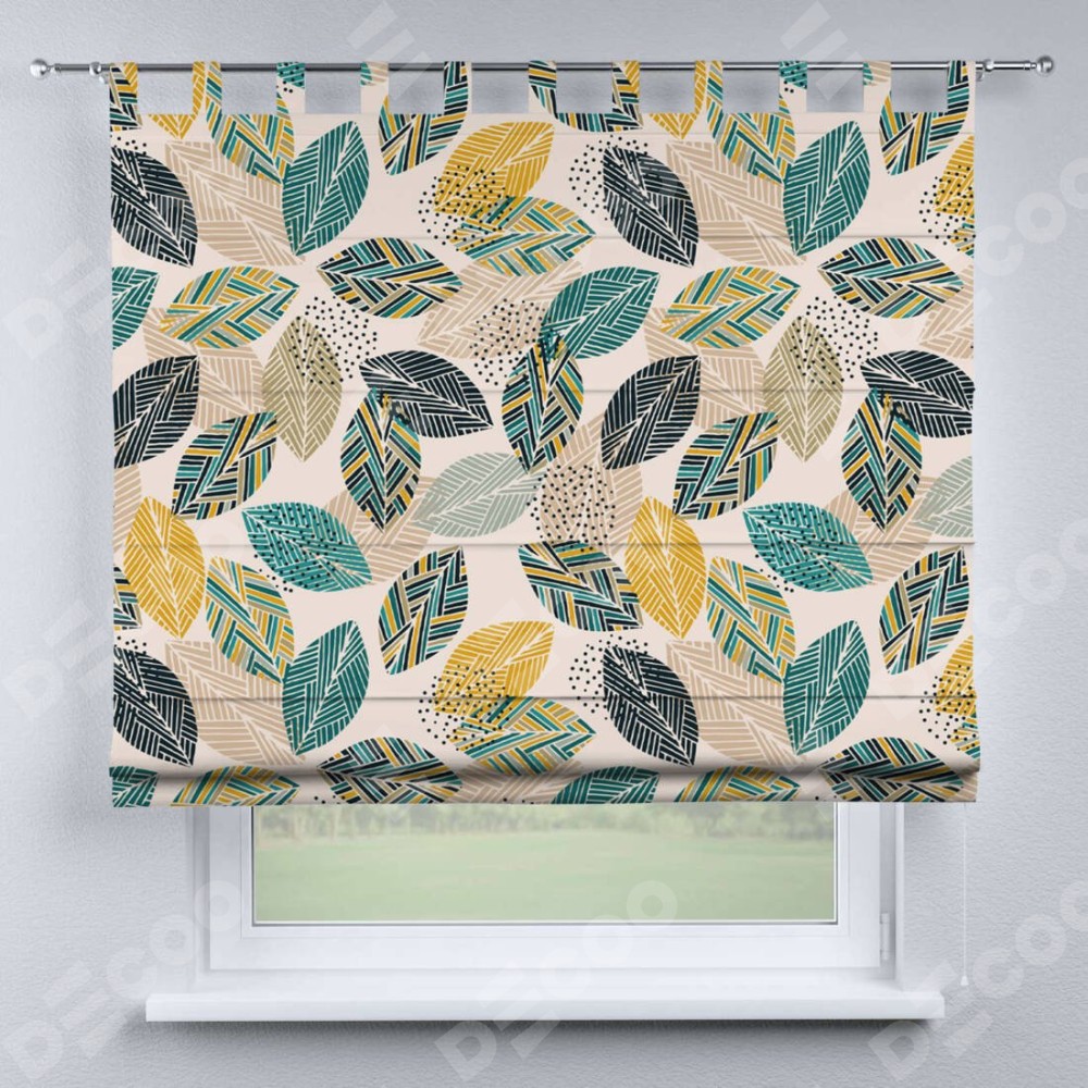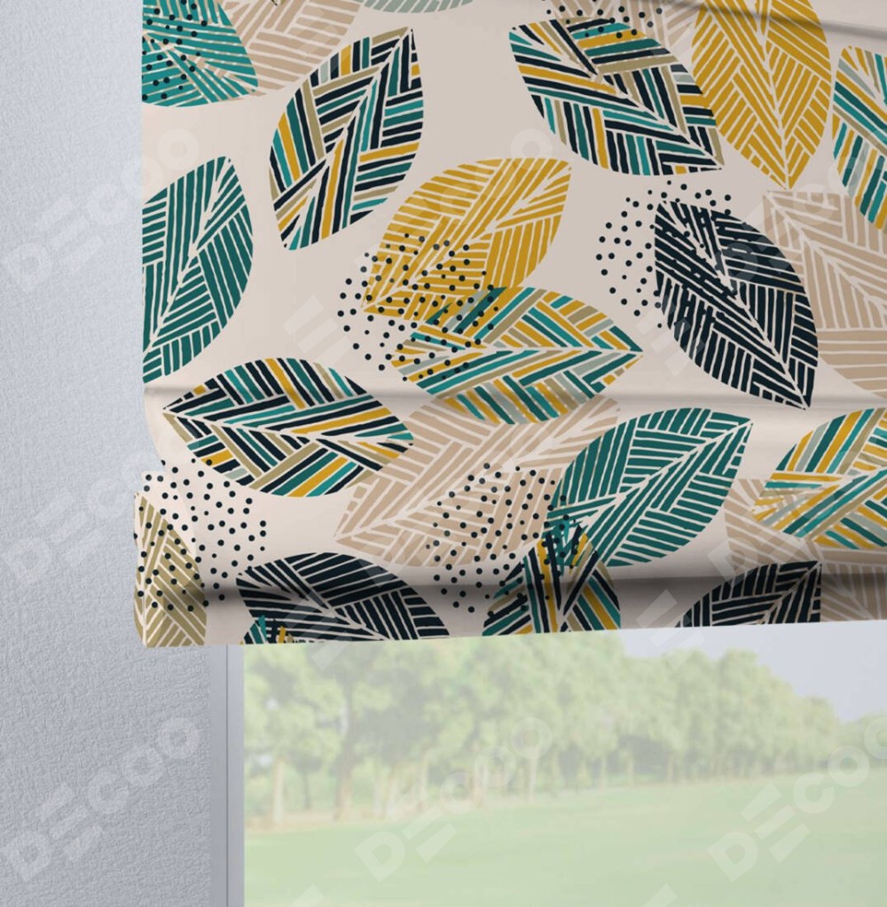 Римская штора производителя «Cortin», используется для проёма, пошита из ткани блэкаут с нанесением сублимационной печати «Листья с орнаментом». Данная модель пошита на петлях, комплектуется на выбор круглым карнизом и подходит для монтажа на стену. Римская штора на петлях имеет простую систему регулировки высоты, отличительным преимуществом данной модели является простой способ монтажа. Достаточно повесить ее на трубу и штора готова!