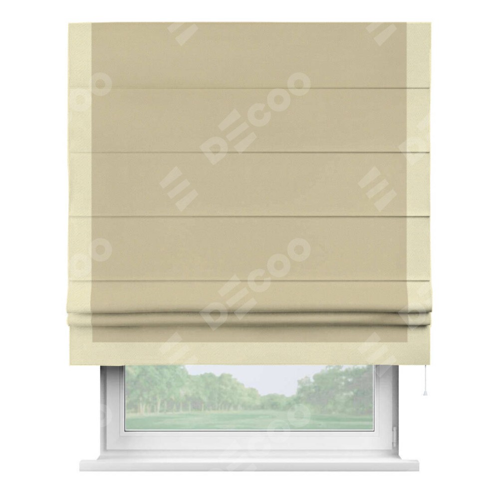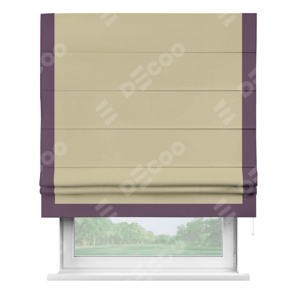Римская штора производителя «Cortin», используется для проёма, пошита из ткани блэкаут однотонный кофейный, артикул ткани 13130. Отделка шторы кантом «Виктория», ткань для канта используется из блэкаута однотонного разной расцветки на выбор. Имеет универсальный механизм и подходит для монтажа: на потолок, на стену и в нишу.