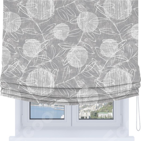 Римская штора Soft производителя «Cortin», используется для проёма, пошита из ткани блэкаут с нанесением сублимационной печати «Серо-белая фантазия». Имеет универсальный механизм и подходит для монтажа: на потолок, на стену и в нишу. В отличие от стандартных римских штор, римская штора Soft не имеет горизонтальных вставок и нижнего отвеса. Это позволяет ткани произвольно драпироваться в свободные мягкие складки.