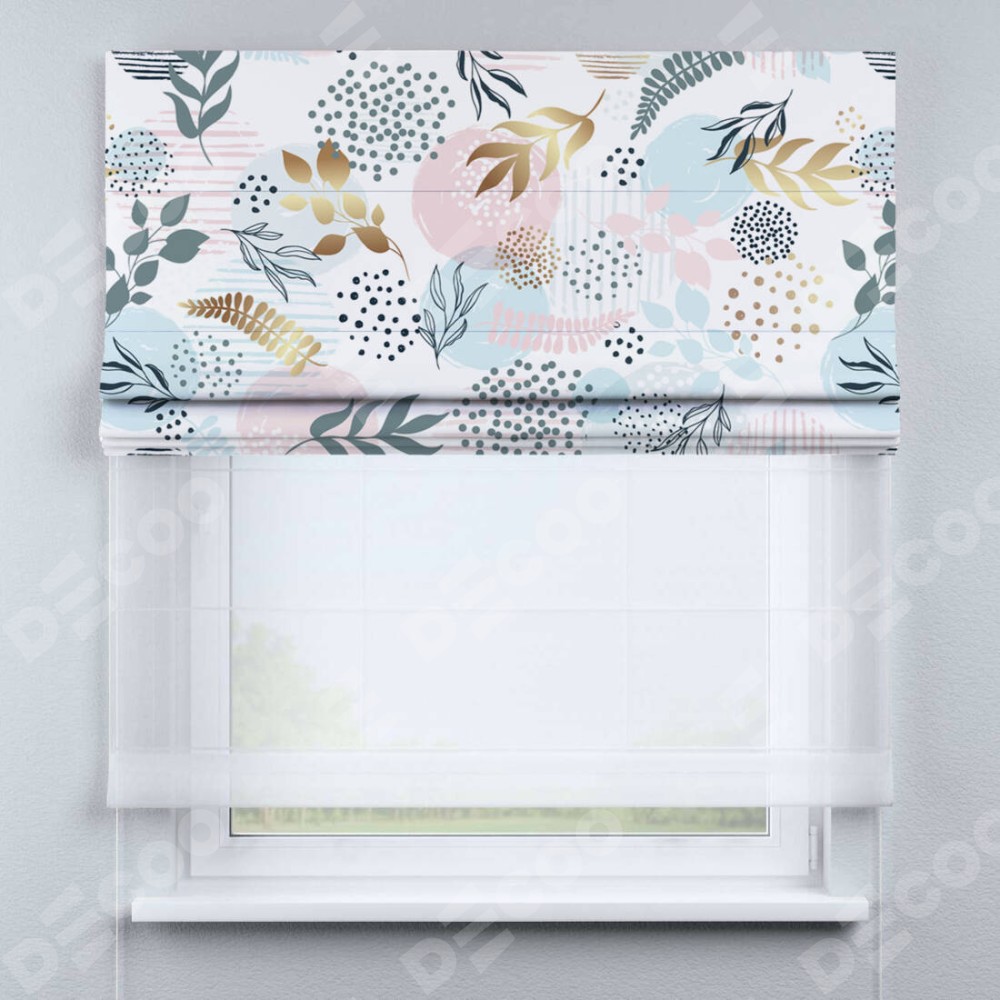Римская штора «Кортин» день-ночь «Точки и листочки»