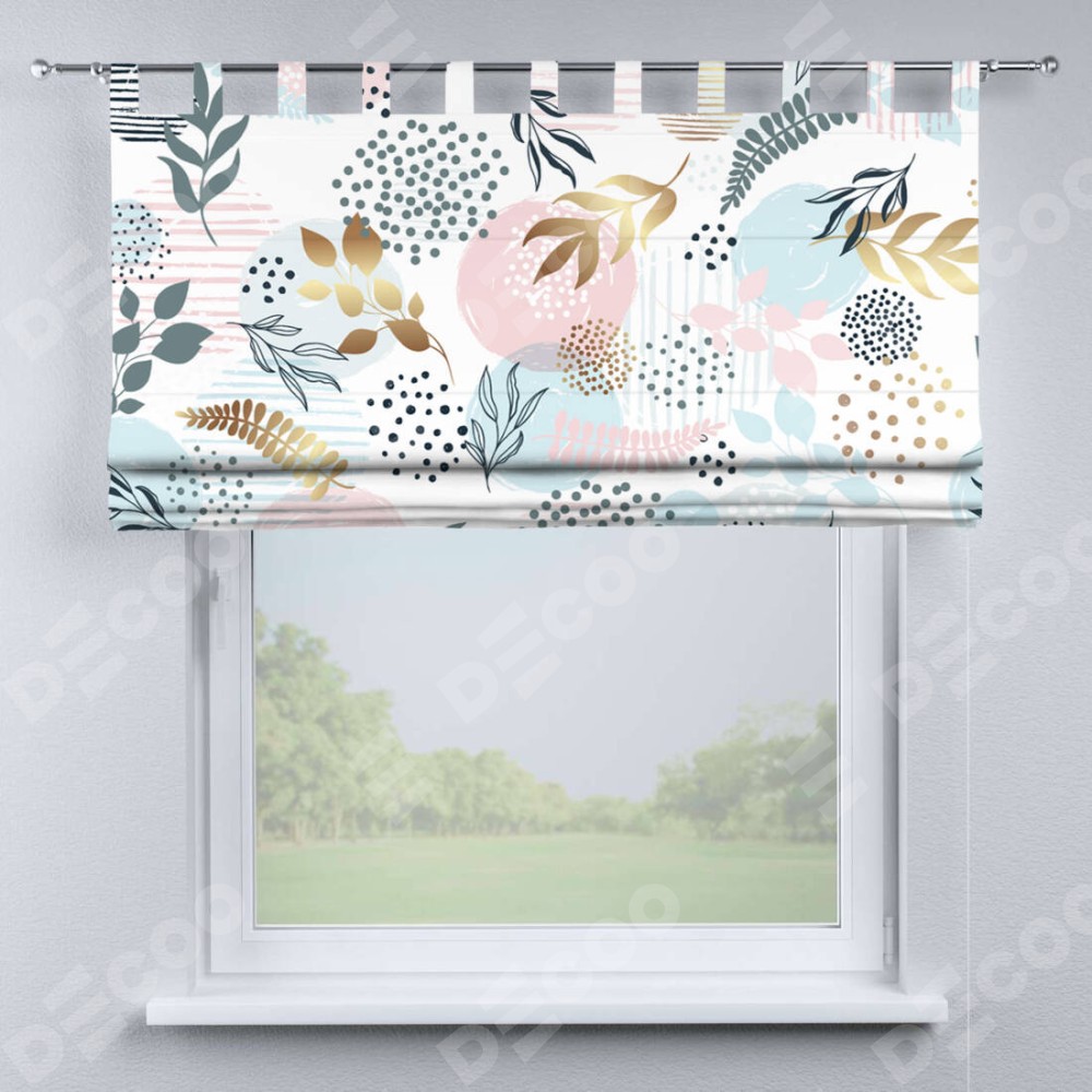 Римская штора производителя «Cortin», используется для проёма, пошита из ткани блэкаут с нанесением сублимационной печати «Точки и листочки». Данная модель пошита на петлях, комплектуется на выбор круглым карнизом и подходит для монтажа на стену. Римская штора на петлях имеет простую систему регулировки высоты, отличительным преимуществом данной модели является простой способ монтажа. Достаточно повесить ее на трубу и штора готова!
