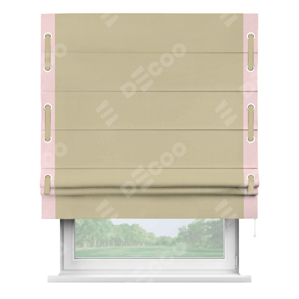 Кант на римских шторах присутствует в виде дизайнерской идеи и может быть пришит по низу, по бокам, по всему периметру и даже посередине полотна. Кант может быть одного цвета с полотном или другого. Также может отличаться фактура ткани канта.