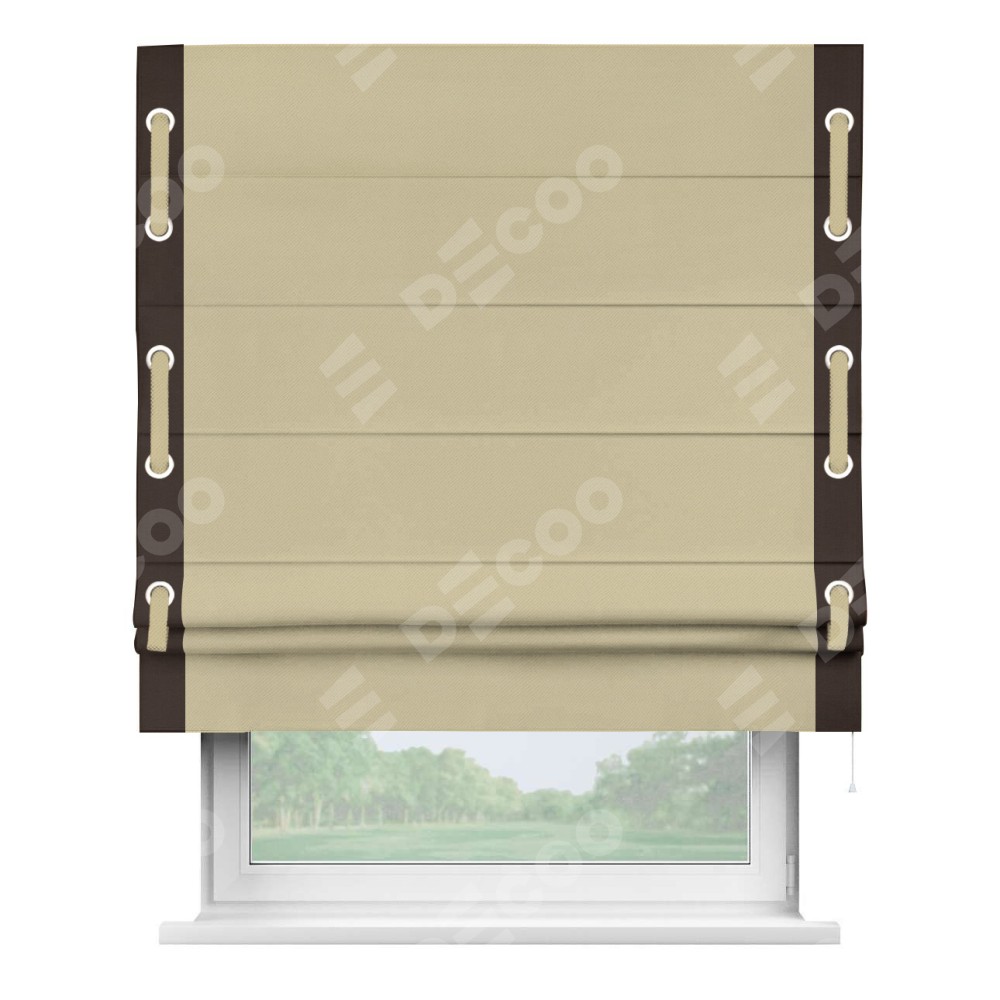 Римская штора «Кортин» с кантом Стрим Дуо (люверсы с пояском), для проема, ткань блэкаут однотонный кофейный