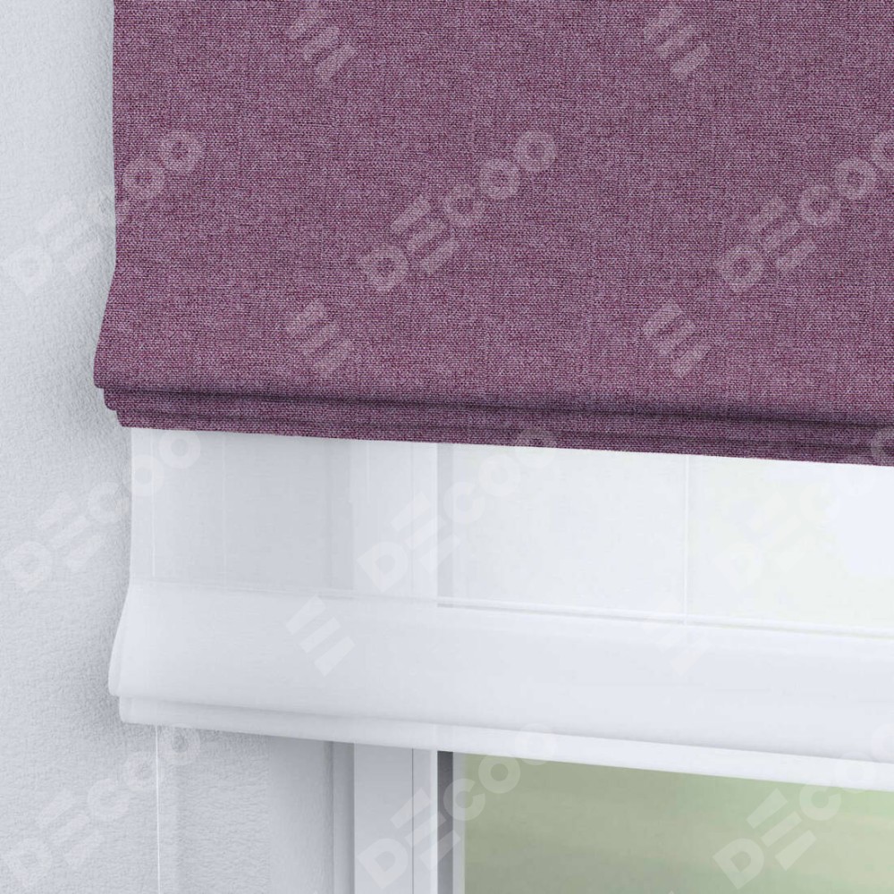 Римская штора день-ночь производителя «Cortin», используется для проёма, пошита из двух полотен, с лицевой стороны лён кашемир сиреневый артикул 21620, вторая ткань тюль (по стандарту комплектуется тюль белого цвета артикул V-01). Имеет универсальный механизм и подходит для монтажа: на потолок, на стену и в нишу.