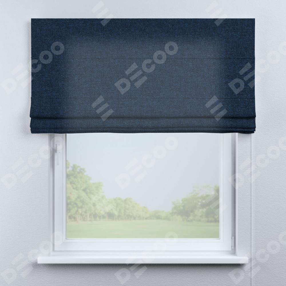 Римская штора производителя «Cortin», используется для проёма, пошита из ткани лён кашемир тёмно-синий, артикул ткани 17215. Имеет универсальный механизм и подходит для монтажа: на потолок, на стену и в нишу.