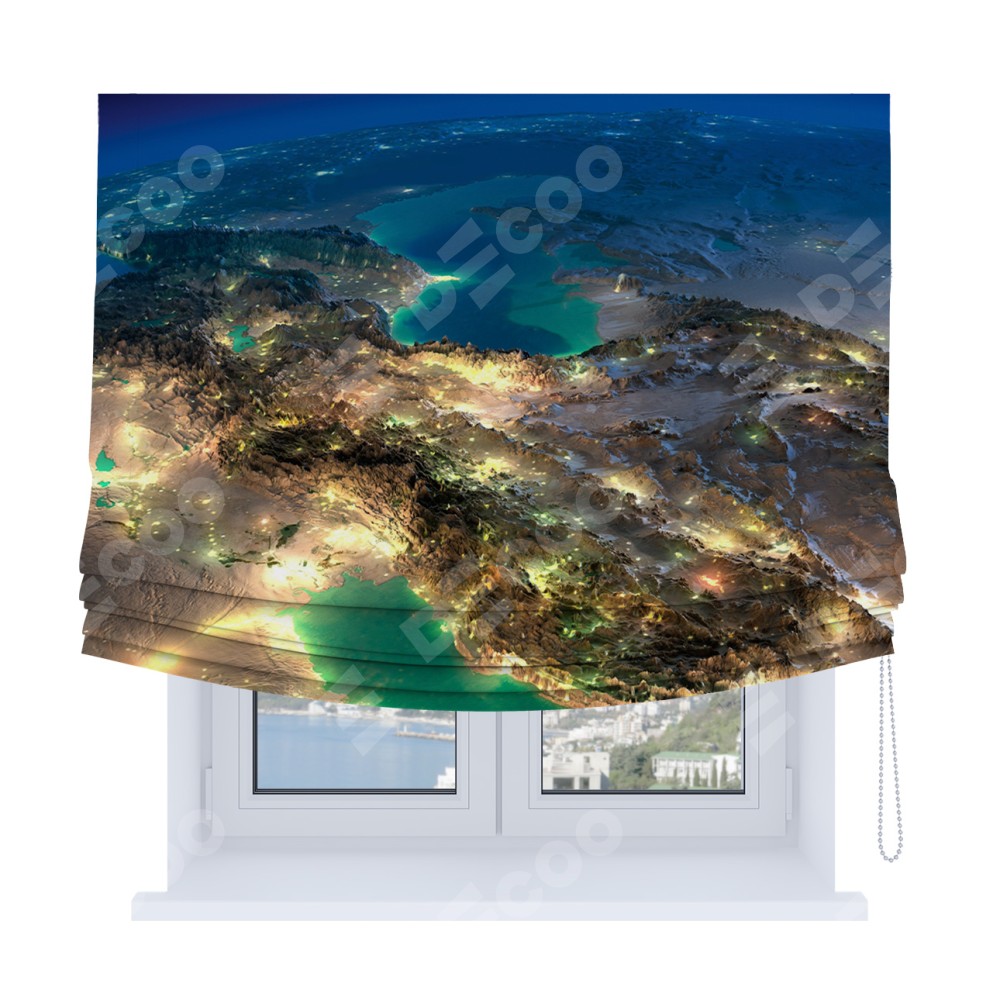 Римская штора Soft производителя «Cortin», используется для проёма, пошита из ткани блэкаут с нанесением сублимационной печати «Ночные огни». Имеет универсальный механизм и подходит для монтажа: на потолок, на стену и в нишу. В отличие от стандартных римских штор, римская штора Soft не имеет горизонтальных вставок и нижнего отвеса. Это позволяет ткани произвольно драпироваться в свободные мягкие складки.