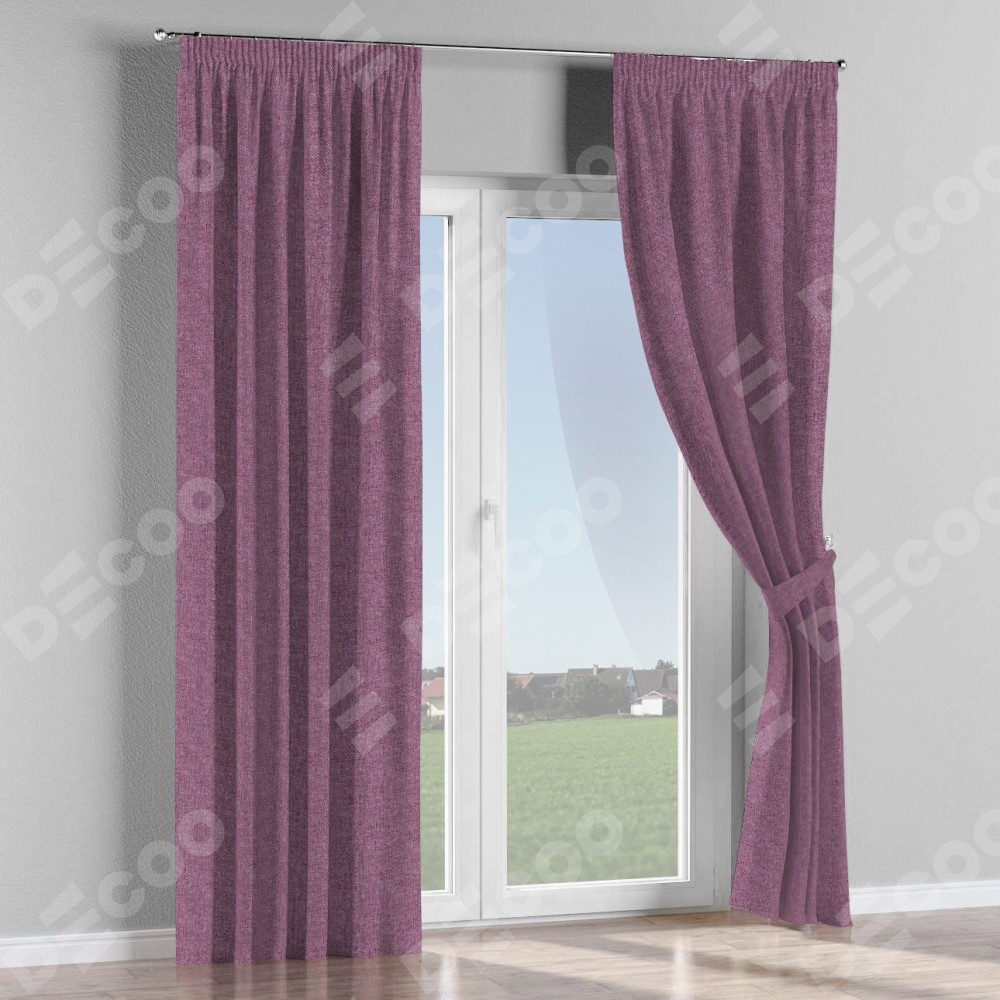Комплект прямых штор, от производителя «Cortin», пошиты из ткани лён кашемир сиреневый, артикул ткани 21620. С изнаночной стороны в верхней части штор пристрачивается шторная лента с декоративными складками «Карандаш». Для создания элегантных складок прямые шторы шьются по стандарту с коэффициентом 1:2 (на 100 см. ширины проёма 200 см. ширины ткани).