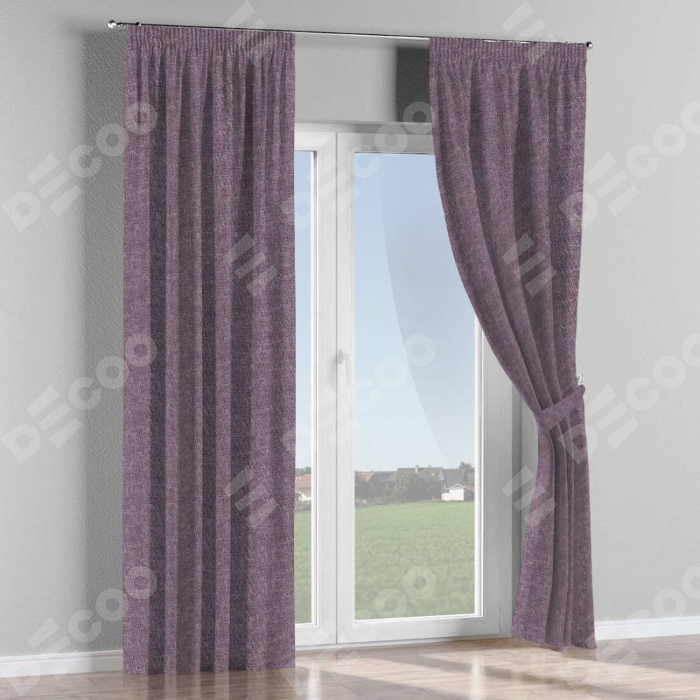 Комплект прямых штор, от производителя «Cortin», пошиты из ткани лён кашемир фиолетовый, артикул ткани 17211. С изнаночной стороны в верхней части штор пристрачивается шторная лента с декоративными складками «Карандаш». Для создания элегантных складок прямые шторы шьются по стандарту с коэффициентом 1:2 (на 100 см. ширины проёма 200 см. ширины ткани).