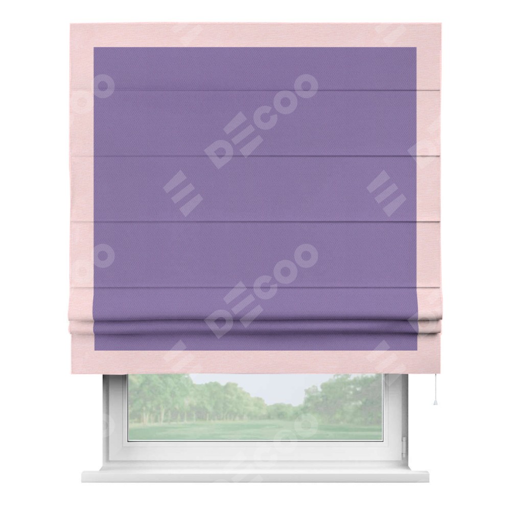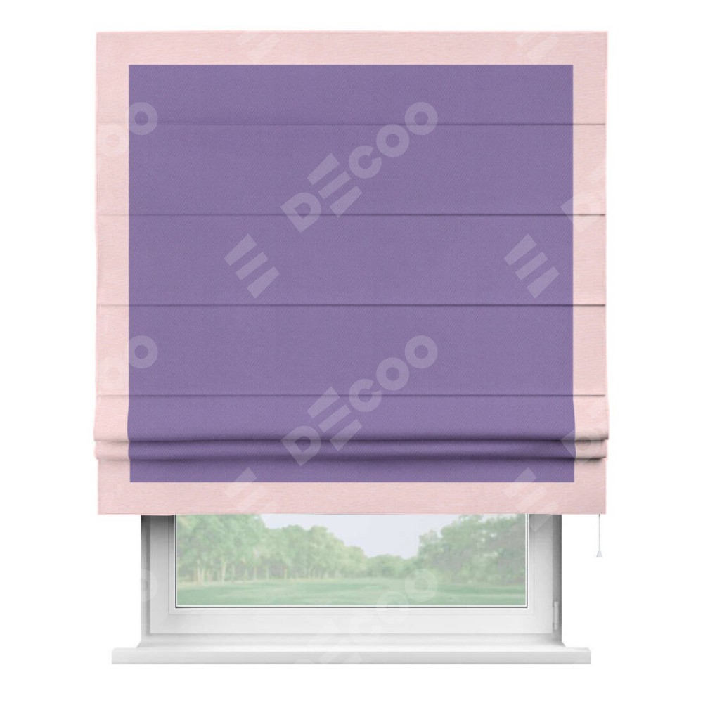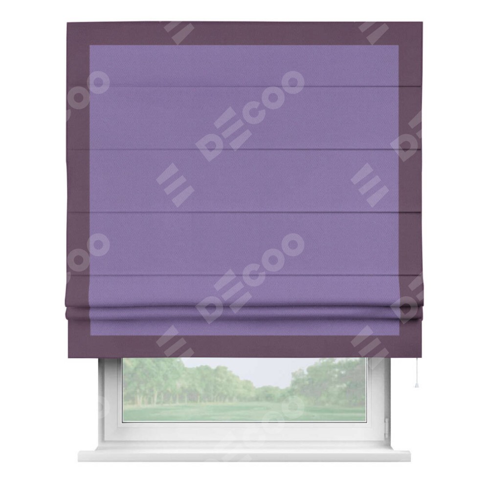 Римская штора «Кортин» с кантом Чесс, для проема, ткань блэкаут однотонный сиреневый
