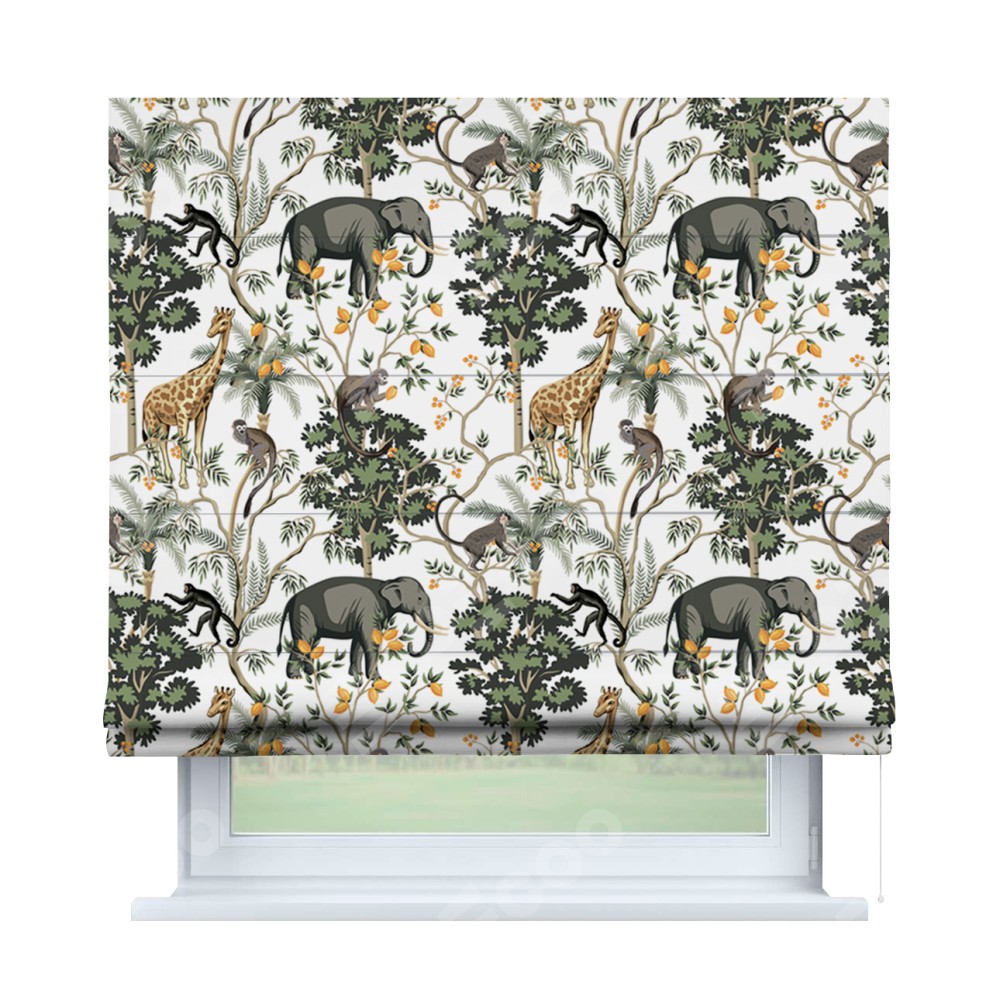 Римская штора производителя «Cortin», используется для проёма, пошита из ткани блэкаут с нанесением сублимационной печати «Африканские равнины». Имеет универсальный механизм и подходит для монтажа: на потолок, на стену и в нишу.