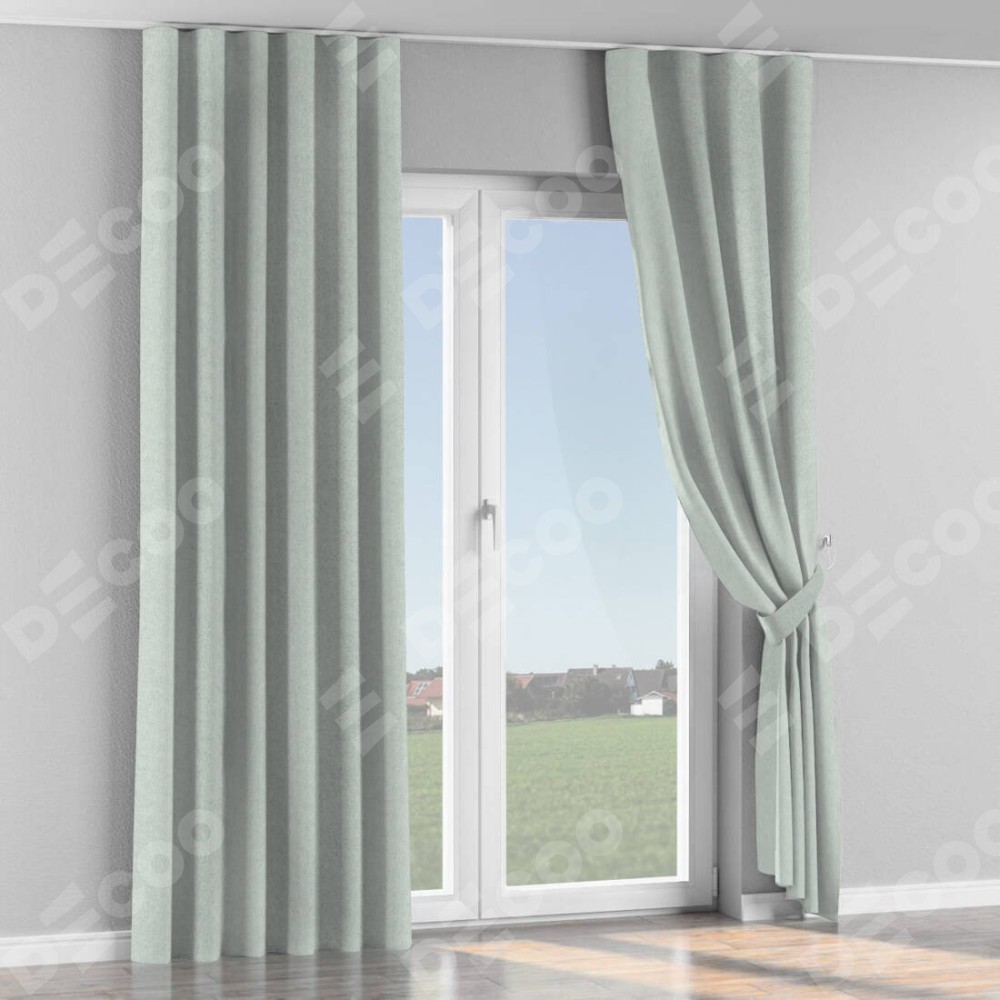 Комплект прямых штор, от производителя «Cortin», пошиты из ткани лён блэкаут белый, артикул ткани 69451. С изнаночной стороны в верхней части штор пристрачивается шторная лента с декоративными складками «Волна». Для создания элегантных складок прямые шторы шьются по стандарту с коэффициентом 1:2 (на 100 см. ширины проёма 200 см. ширины ткани).