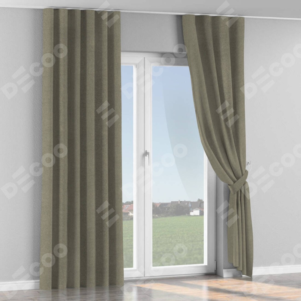 Комплект прямых штор, от производителя «Cortin», пошиты из ткани лён блэкаут шампань, артикул ткани 69449. С изнаночной стороны в верхней части штор пристрачивается шторная лента с декоративными складками «Волна». Для создания элегантных складок прямые шторы шьются по стандарту с коэффициентом 1:2 (на 100 см. ширины проёма 200 см. ширины ткани).
