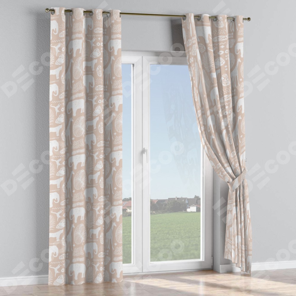 Комплект прямых штор, от производителя «Cortin», пошиты из ткани блэкаут с нанесением сублимационной печати «Африканские животные». Данная модель пошита на люверсах, комплектуется на выбор круглым карнизом и подходит для монтажа на стену или потолок. Прямые шторы на люверсах шьются по стандарту с коэффициентом 1/2 (на 100 см. ширины проёма 200 см. ширины ткани), отличительным преимуществом данной модели является простой способ монтажа. Достаточно повесить ее на трубу и штора готова!