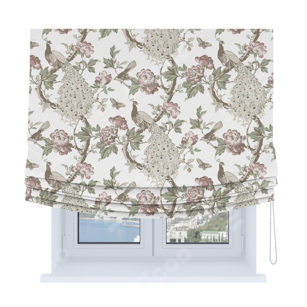 Римская штора Soft с мягкими складками, «Гордые павлины»
