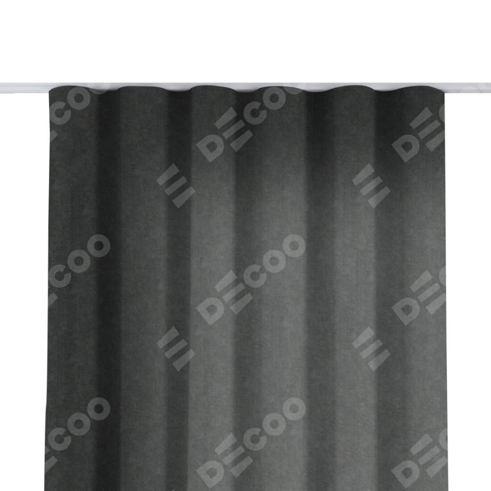 Комплект прямых штор, от производителя «Cortin», пошиты из ткани вельвет тёмно-серый, артикул ткани 33811. С изнаночной стороны в верхней части штор пристрачивается шторная лента с декоративными складками «Волна». Для создания элегантных складок прямые шторы шьются по стандарту с коэффициентом 1:2 (на 100 см. ширины проёма 200 см. ширины ткани).