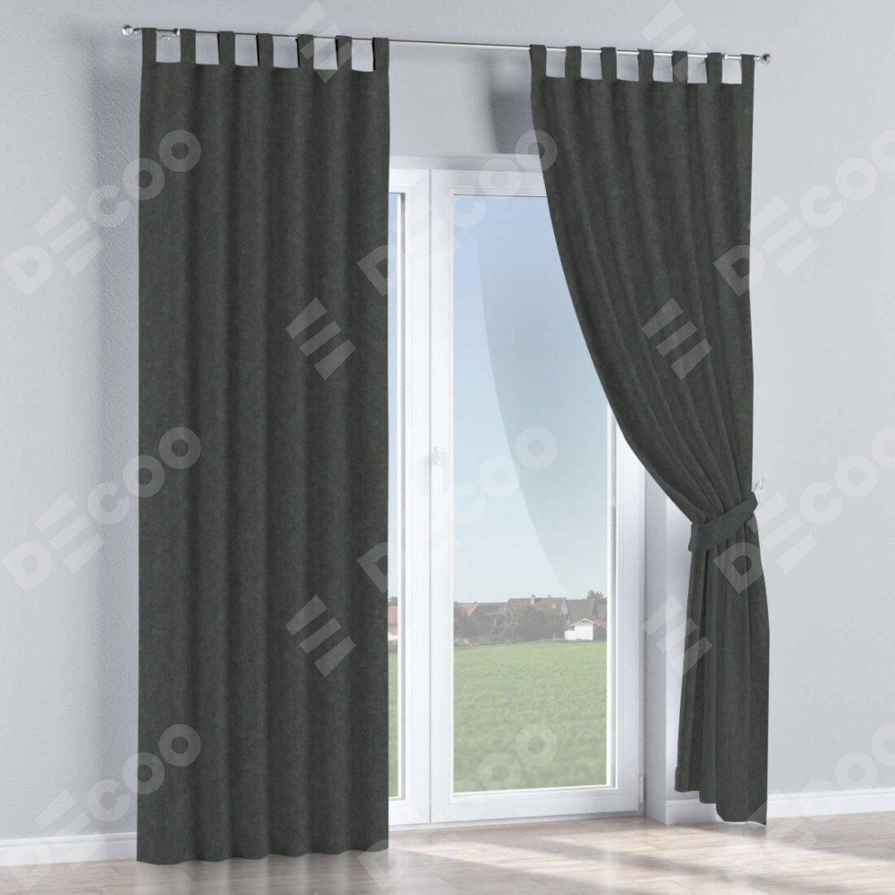 Комплект прямых штор, от производителя «Cortin», пошиты из ткани вельвет тёмно-серый, артикул ткани 33811. Данная модель пошита на петлях, комплектуется на выбор круглым карнизом и подходит для монтажа на стену или потолок. Прямые шторы на петлях шьются по стандарту с коэффициентом 1/2 (на 100 см. ширины проёма 200 см. ширины ткани), отличительным преимуществом данной модели является простой способ монтажа. Достаточно повесить ее на трубу и штора готова!