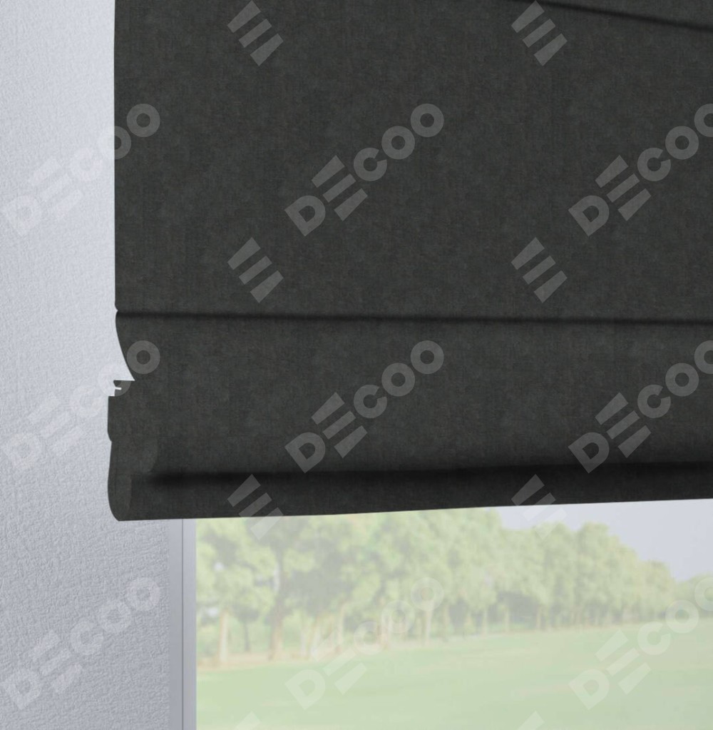 Римская штора производителя «Cortin», используется для проёма, пошита из ткани вельвет тёмно-серый, артикул ткани 33811. Данная модель пошита на петлях, комплектуется на выбор круглым карнизом и подходит для монтажа на стену. Римская штора на петлях имеет простую систему регулировки высоты, отличительным преимуществом данной модели является простой способ монтажа. Достаточно повесить ее на трубу и штора готова!