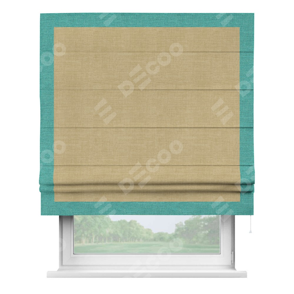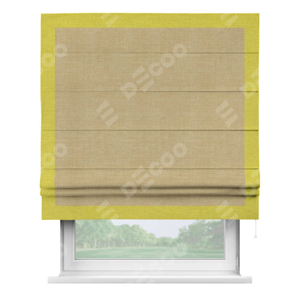 Римская штора «Кортин» с кантом Чесс, для проема, ткань лён бежевый
