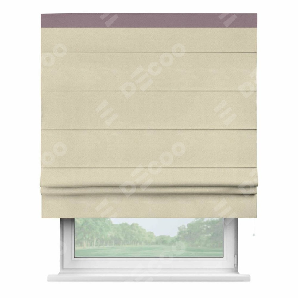 Римская штора производителя «Cortin», используется для проёма, пошита из ткани блэкаут однотонный бежевый, артикул ткани 13125. Отделка шторы кантом «Кинг», ткань для канта используется из блэкаута однотонного разной расцветки на выбор. Имеет универсальный механизм и подходит для монтажа: на потолок, на стену и в нишу.