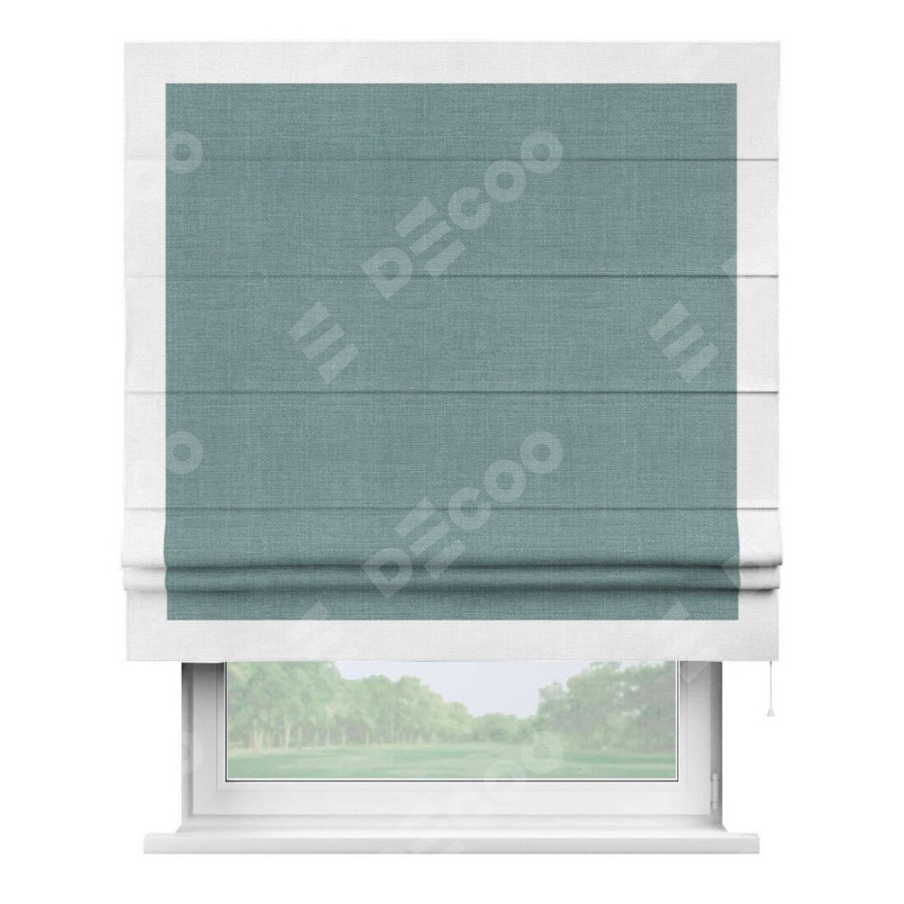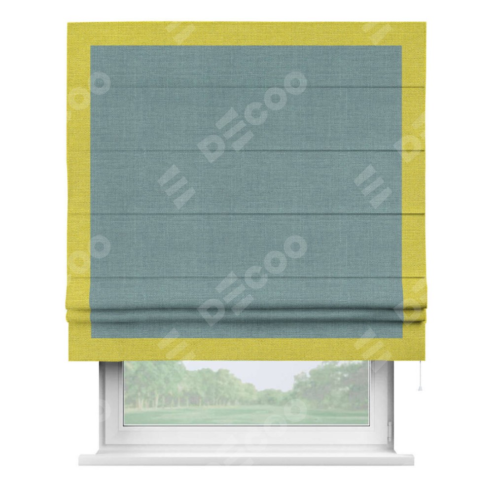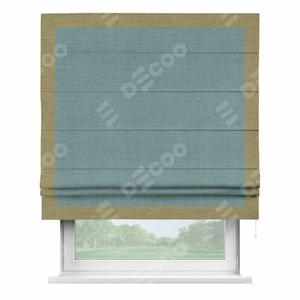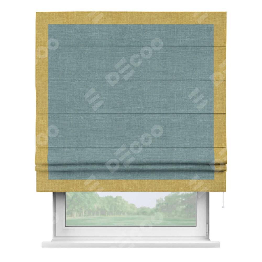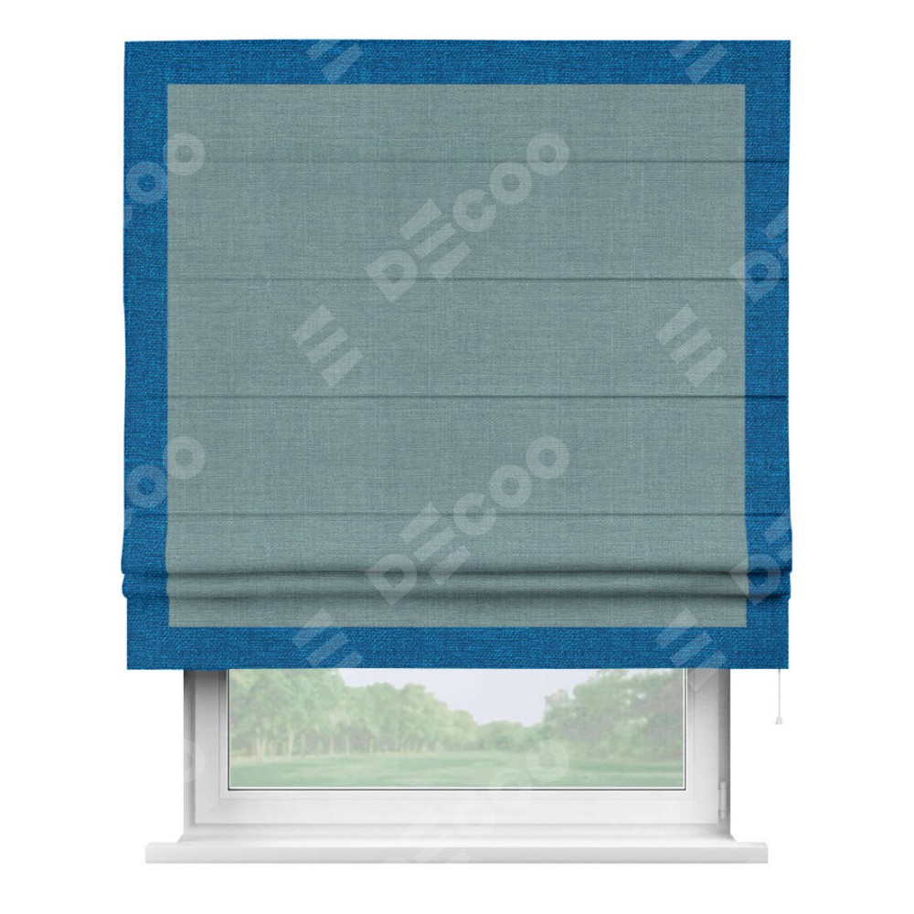 Римская штора «Кортин» с кантом Чесс, для проема, лён, цвет голубой