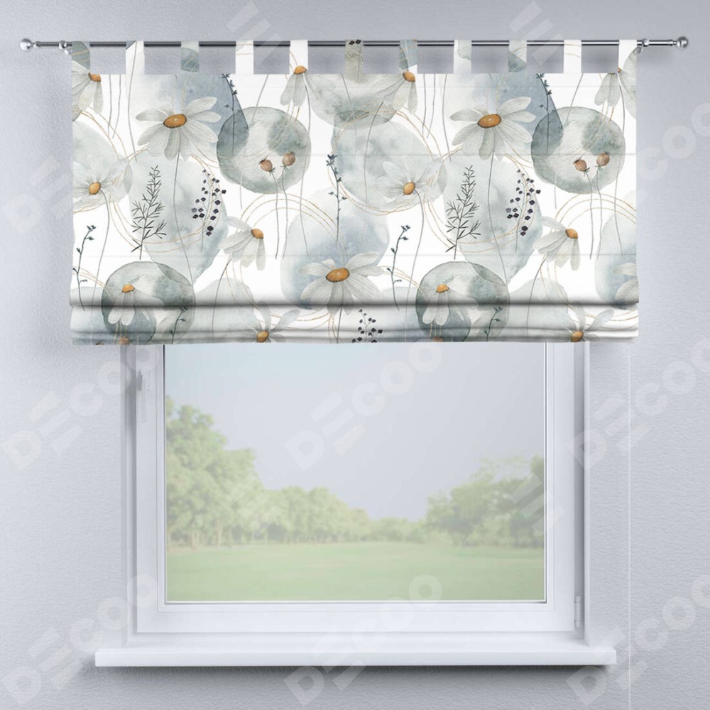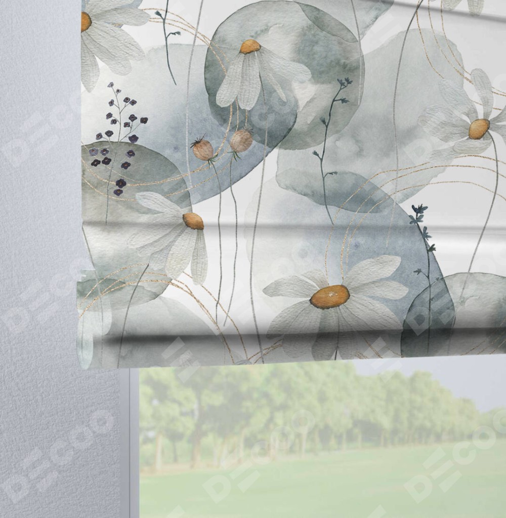 Римская штора производителя «Cortin», используется для проёма, пошита из ткани блэкаут с нанесением сублимационной печати «Ромашки акварель». Данная модель пошита на петлях, комплектуется на выбор круглым карнизом и подходит для монтажа на стену. Римская штора на петлях имеет простую систему регулировки высоты, отличительным преимуществом данной модели является простой способ монтажа. Достаточно повесить ее на трубу и штора готова!