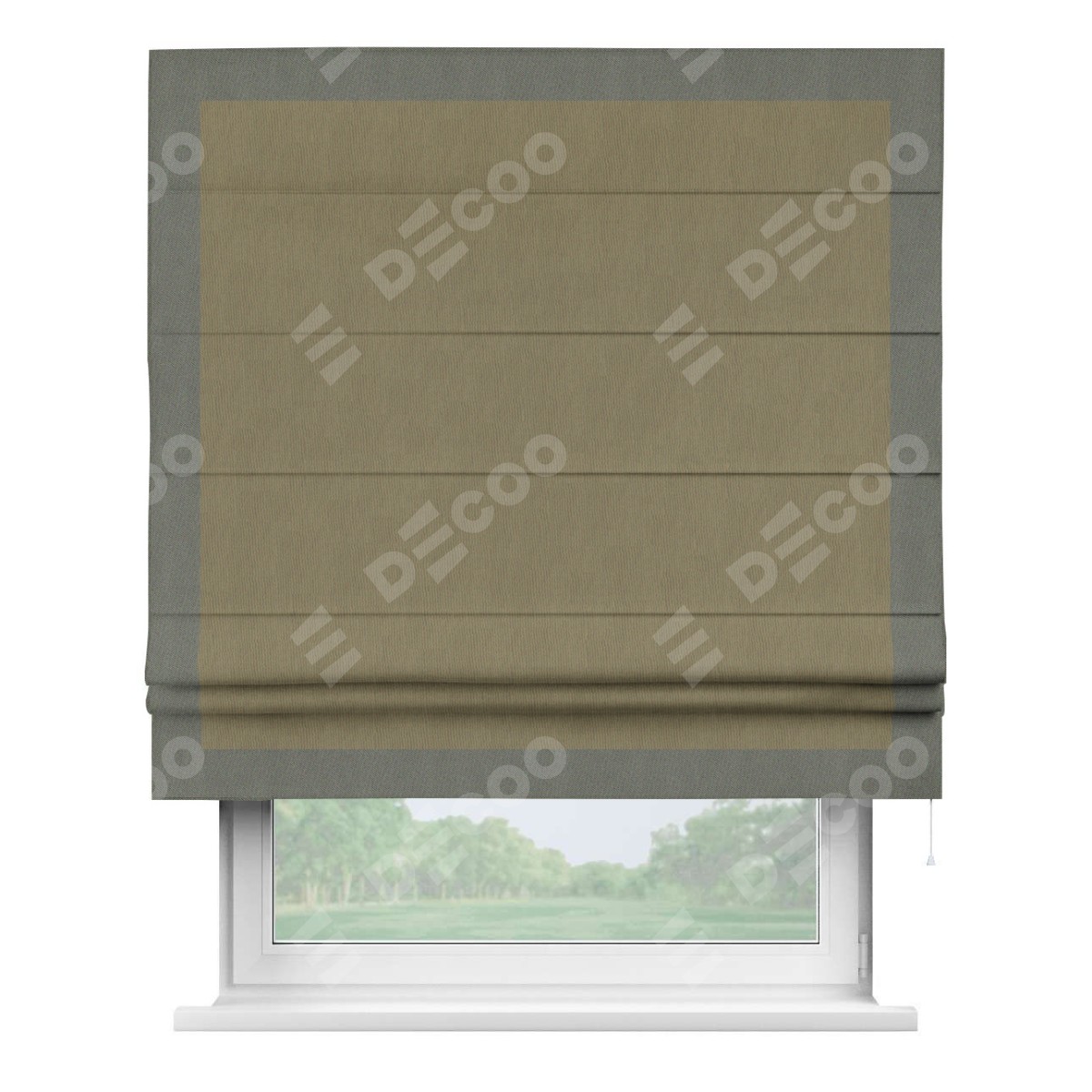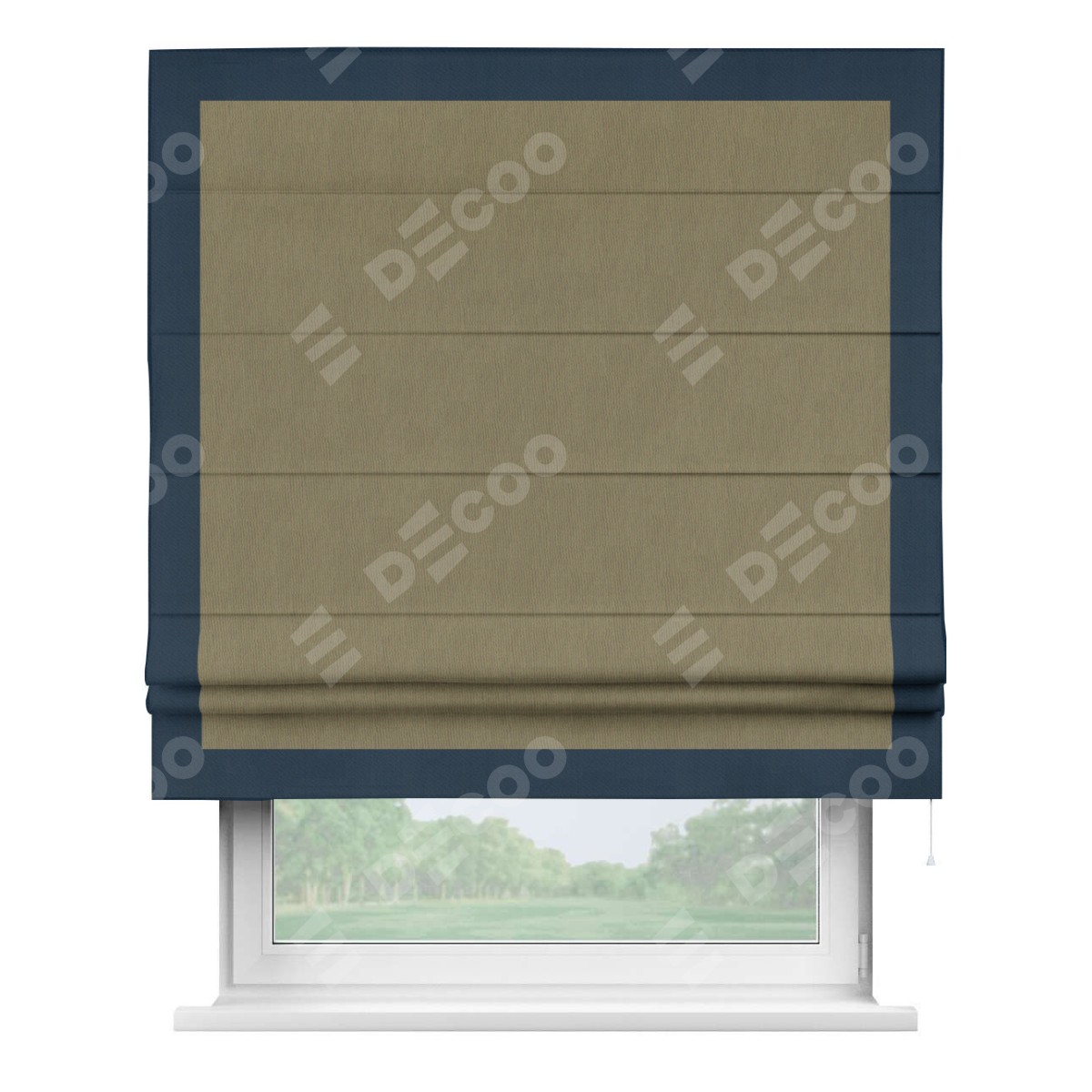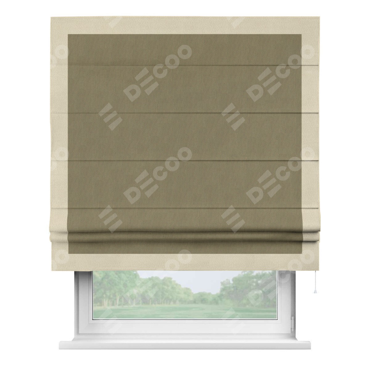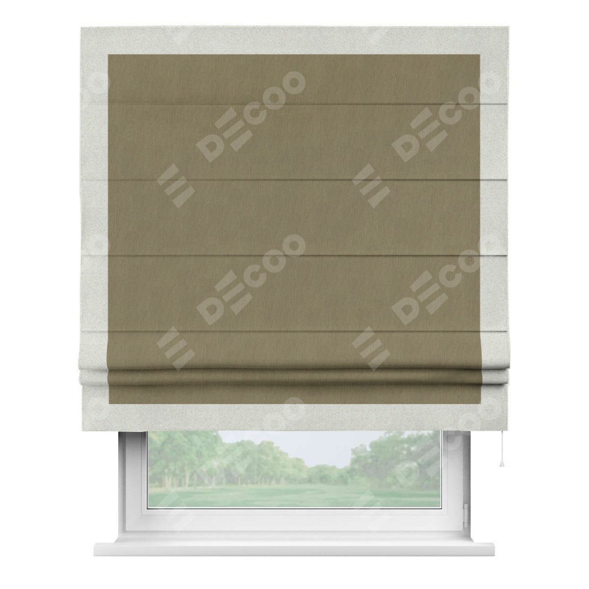 Римская штора производителя «Cortin», используется для проёма, пошита из ткани блэкаут однотонный бежево-золотой, артикул ткани 12095−2. Отделка шторы кантом «Чесс», ткань для канта используется из блэкаута однотонного разной расцветки на выбор. Имеет универсальный механизм и подходит для монтажа: на потолок, на стену и в нишу.