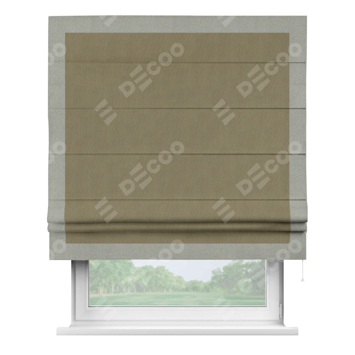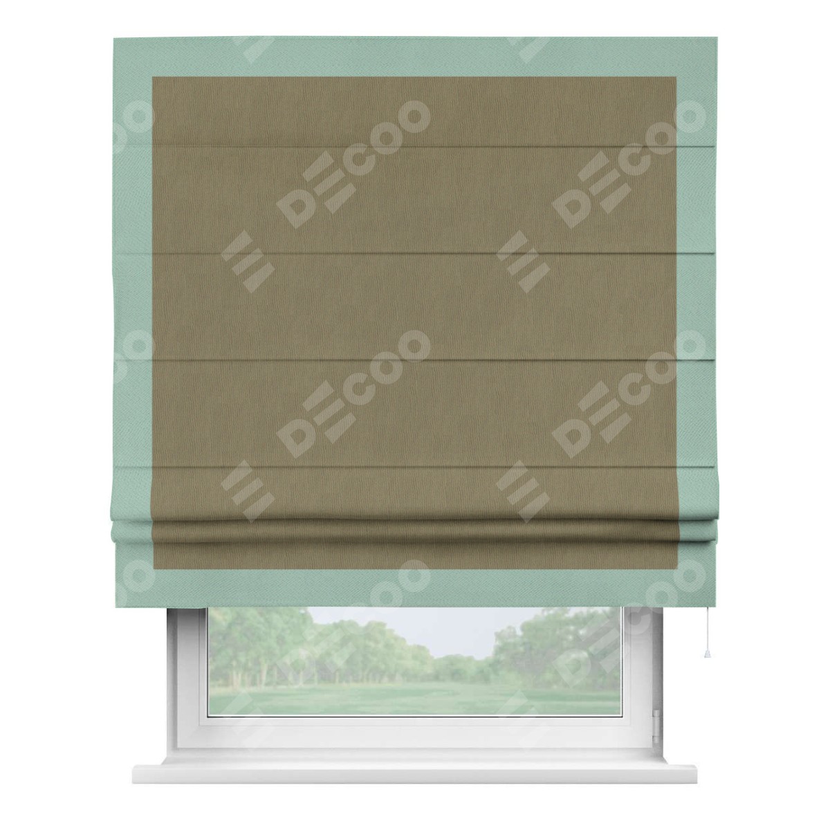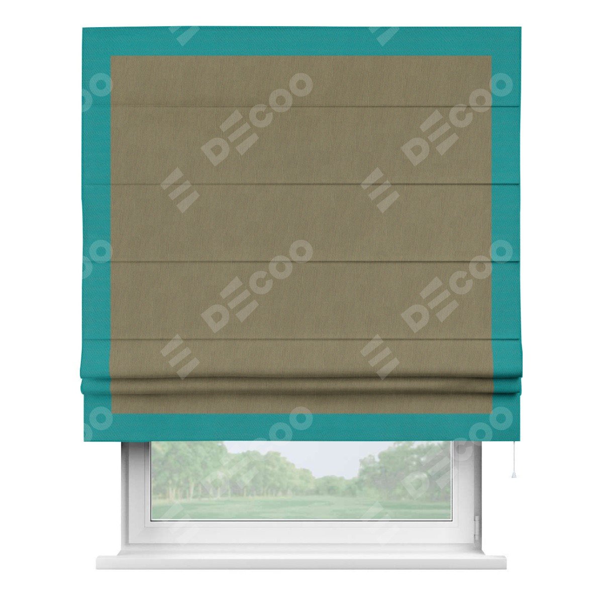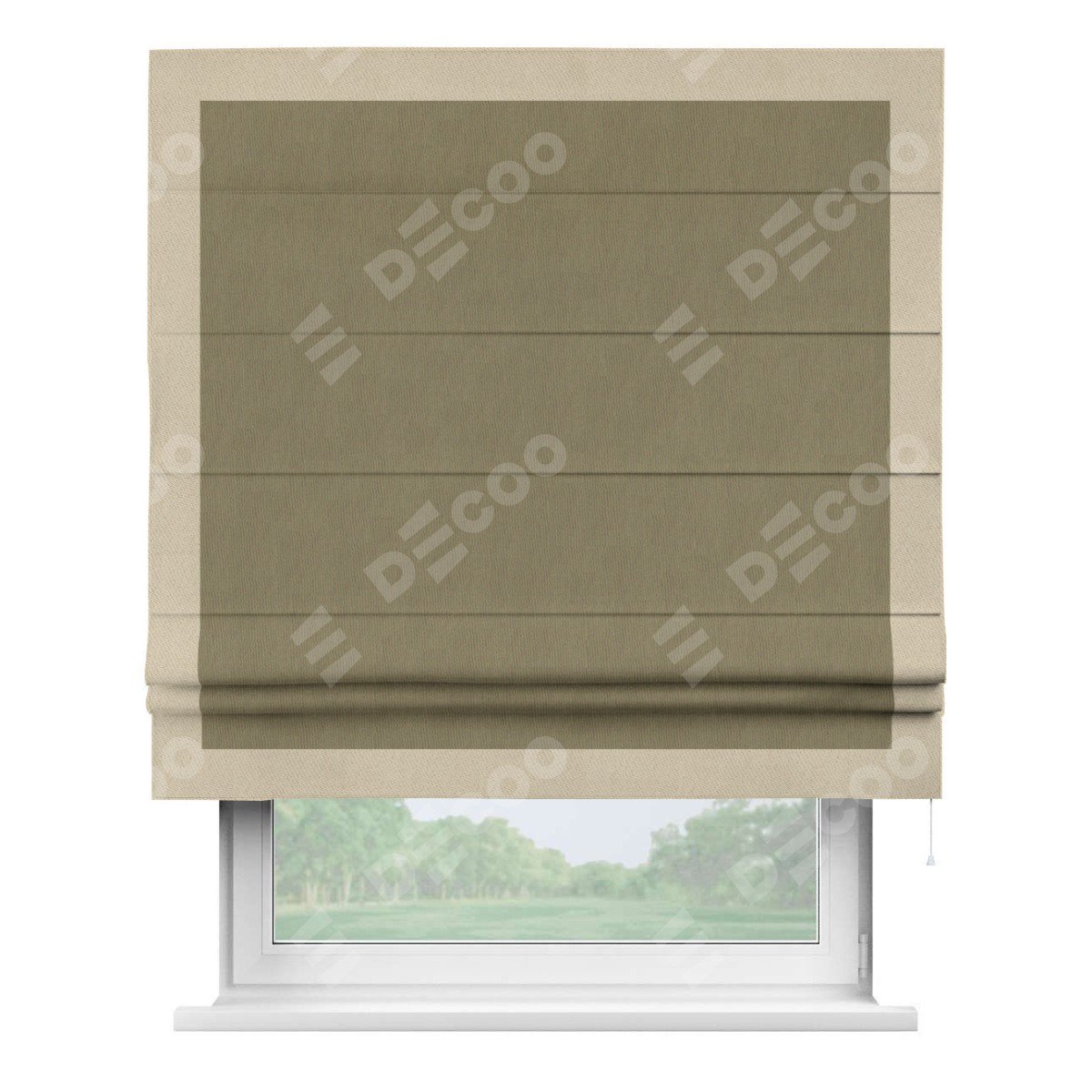 Римская штора производителя «Cortin», используется для проёма, пошита из ткани блэкаут однотонный бежево-золотой, артикул ткани 12095−2. Отделка шторы кантом «Чесс», ткань для канта используется из блэкаута однотонного разной расцветки на выбор. Имеет универсальный механизм и подходит для монтажа: на потолок, на стену и в нишу.