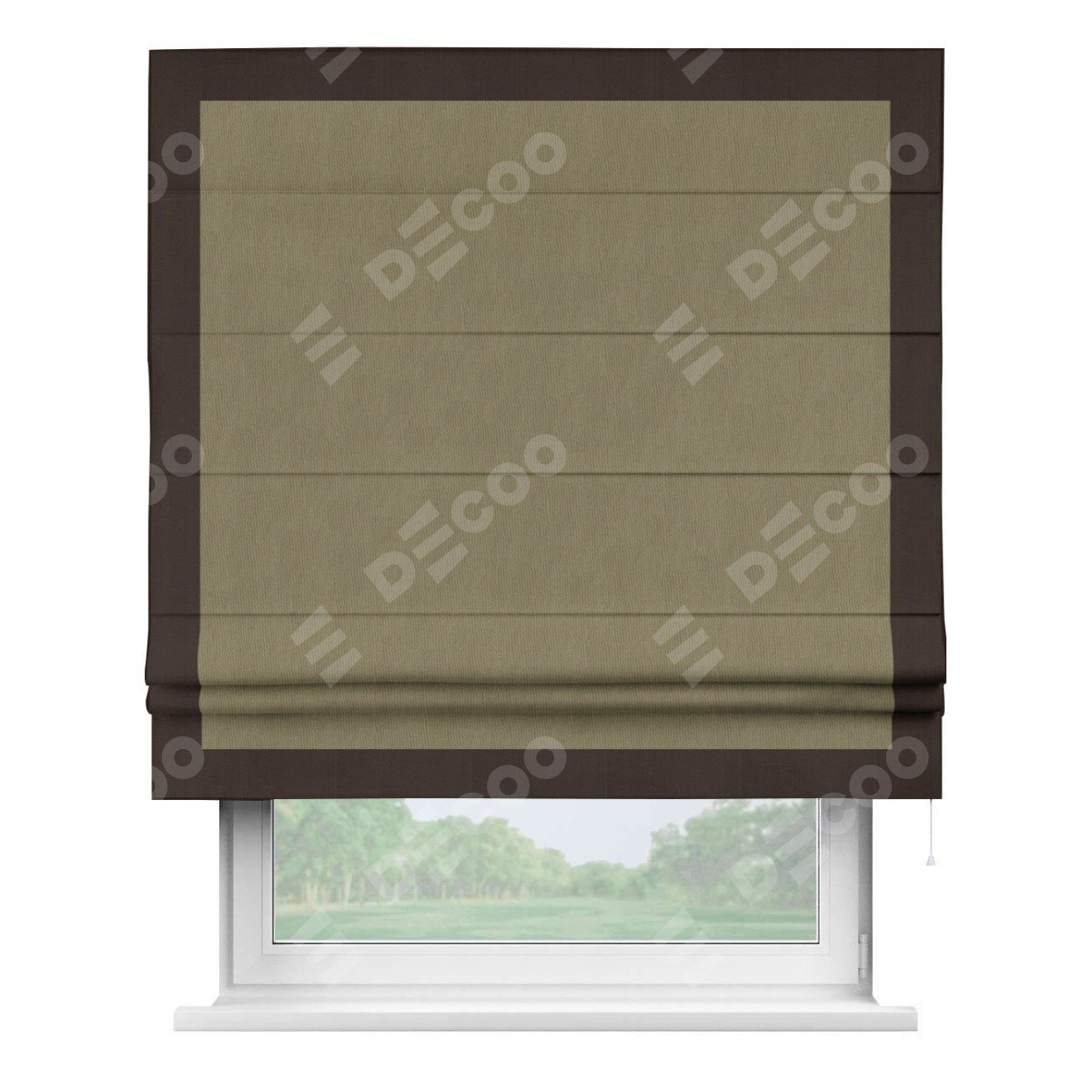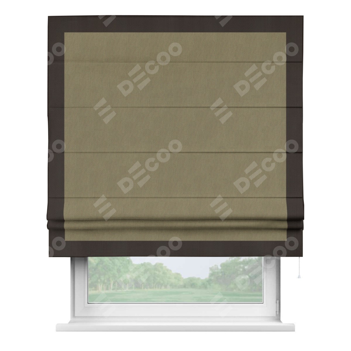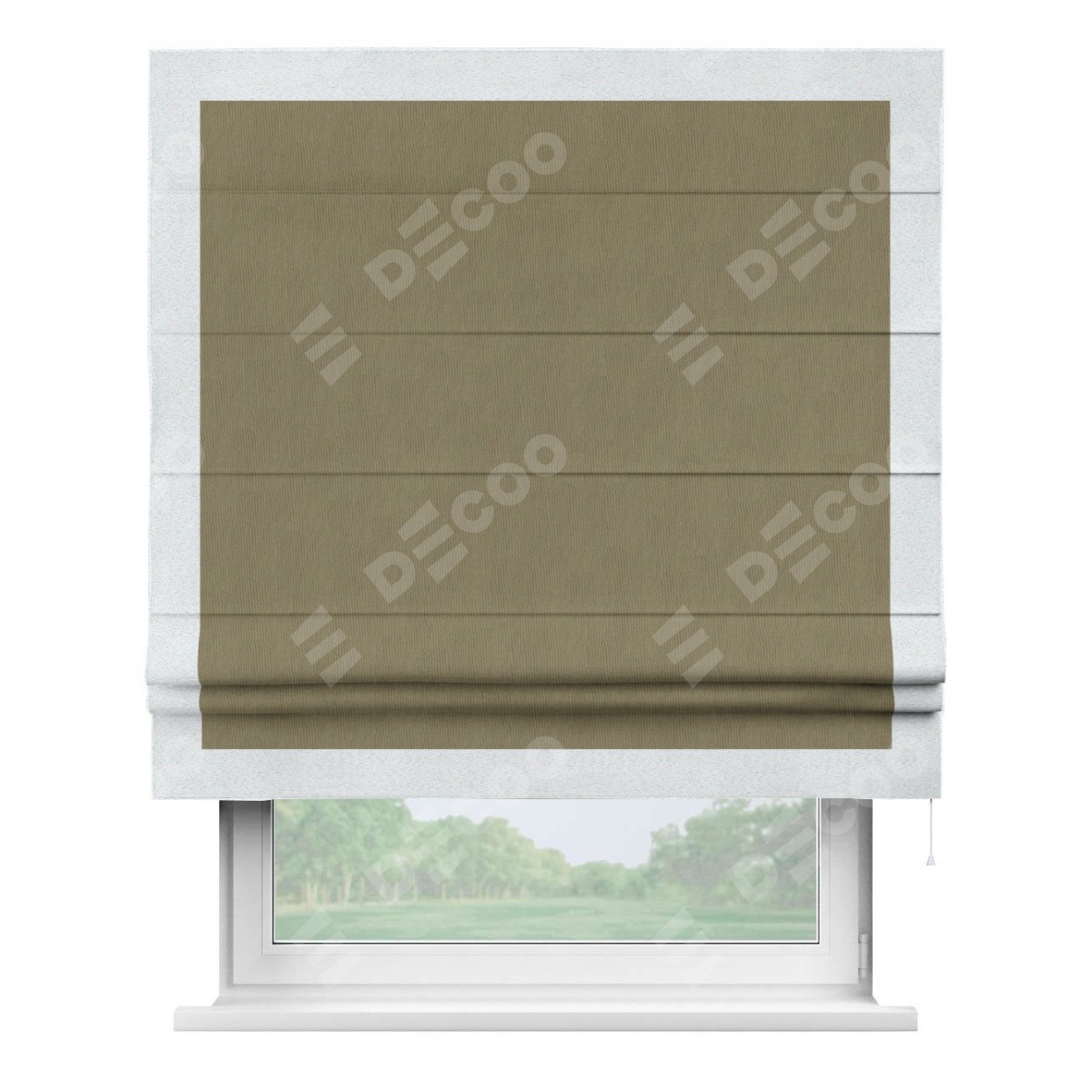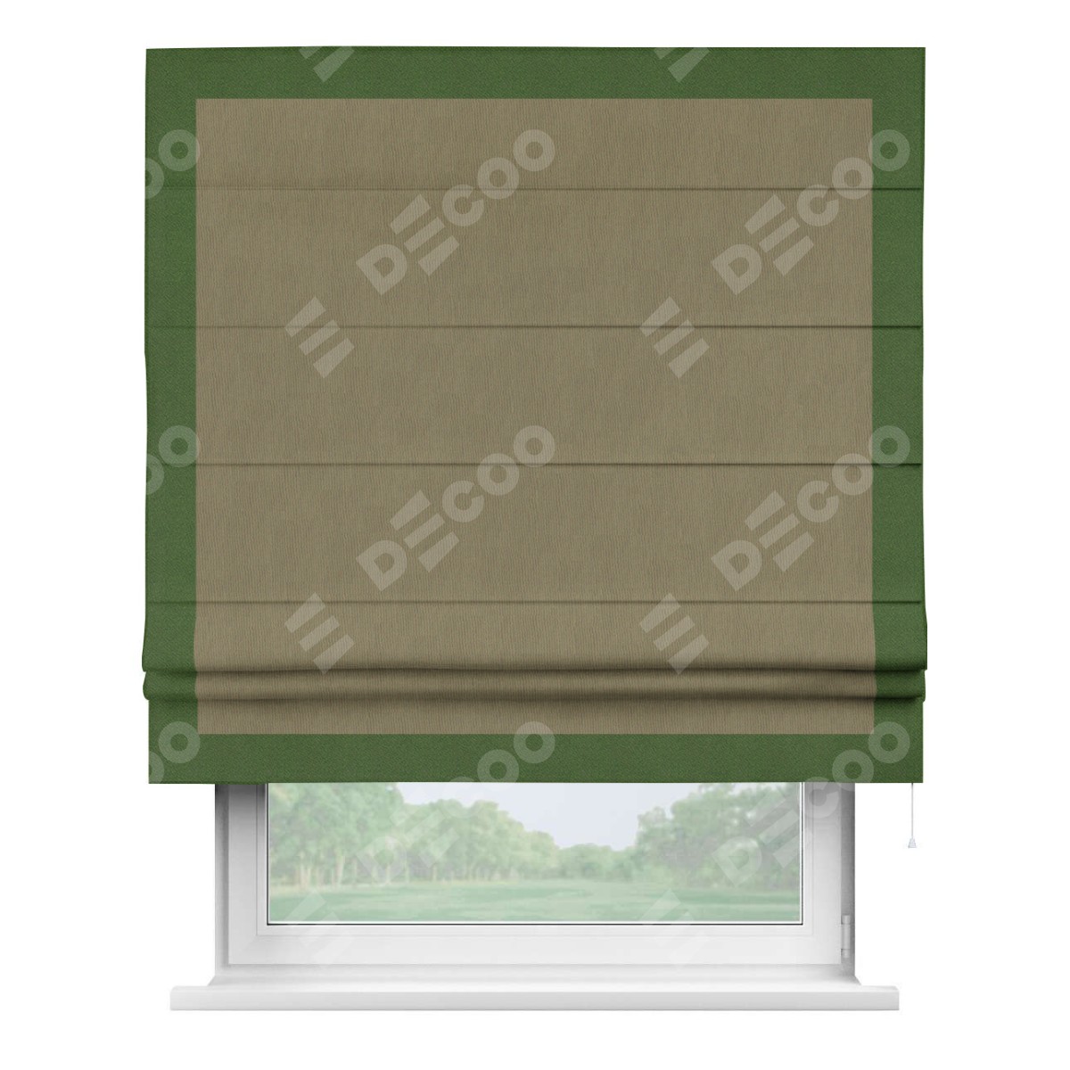 Римская штора производителя «Cortin», используется для проёма, пошита из ткани блэкаут однотонный бежево-золотой, артикул ткани 12095−2. Отделка шторы кантом «Чесс», ткань для канта используется из блэкаута однотонного разной расцветки на выбор. Имеет универсальный механизм и подходит для монтажа: на потолок, на стену и в нишу.
