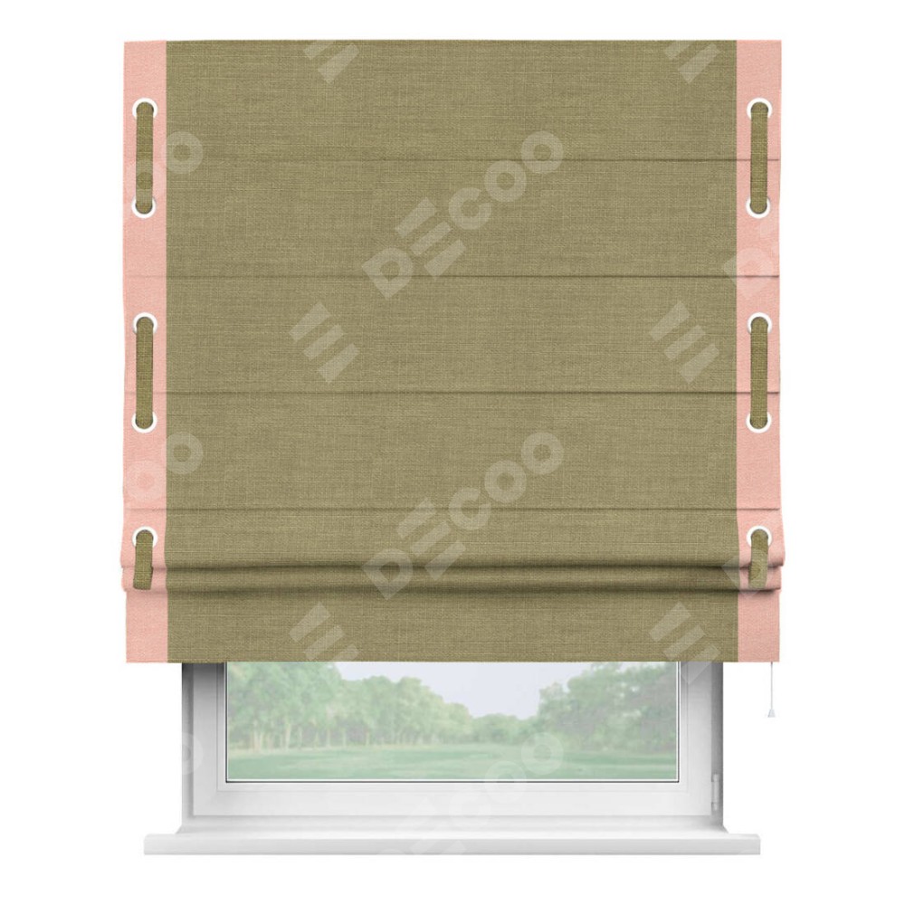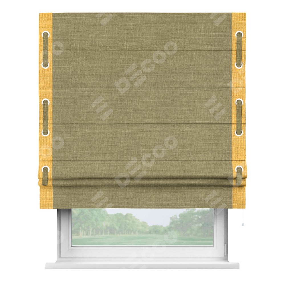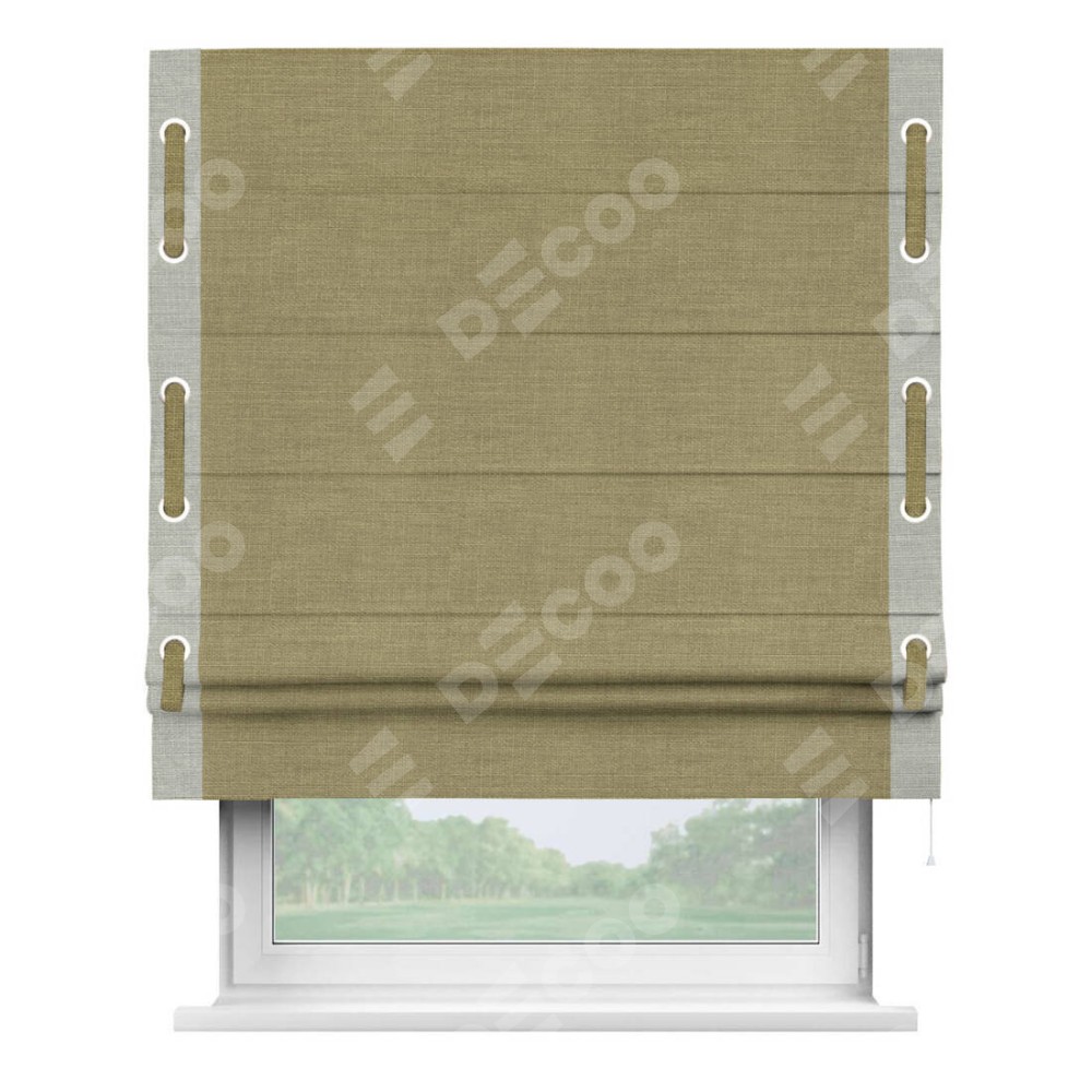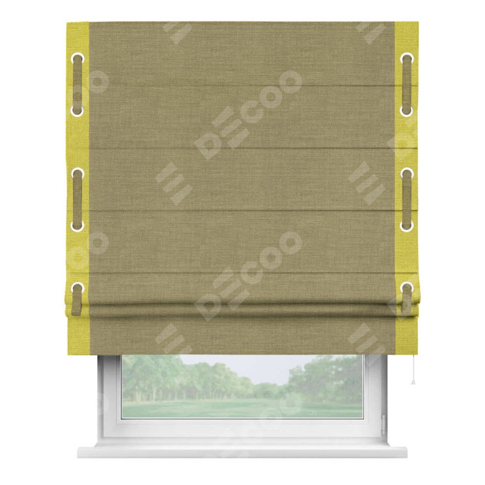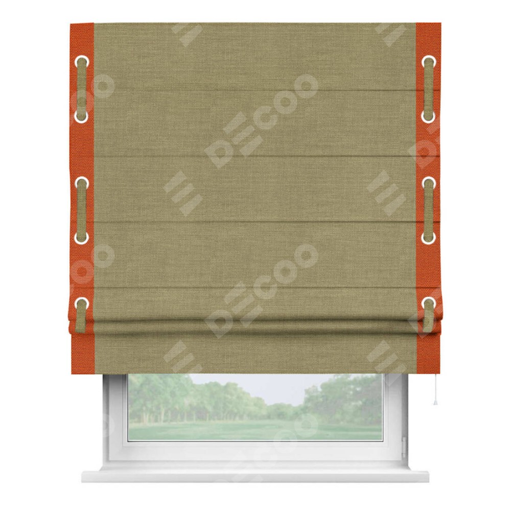 Римская штора «Кортин» с кантом (люверсы с пояском), для проема, лён коричневый