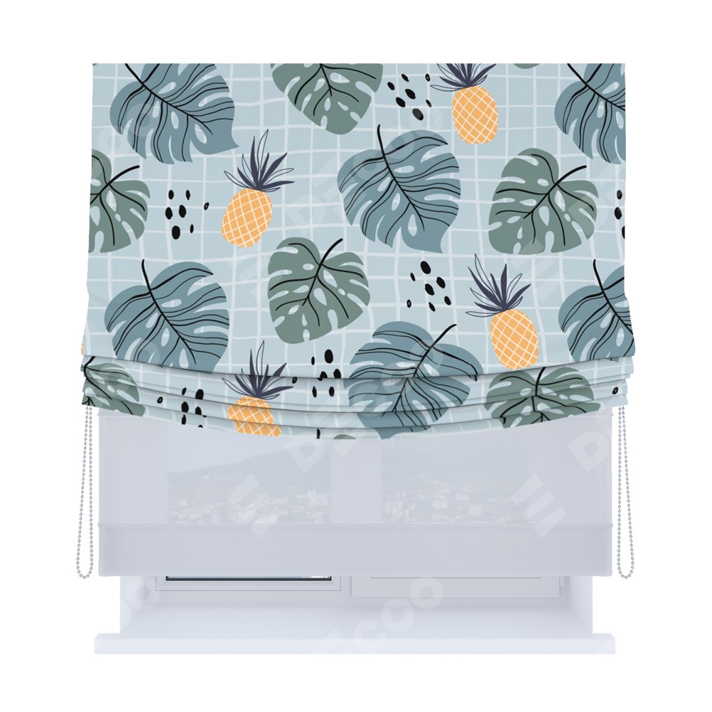 Римская штора «Кортин», день-ночь с мягкими складками, «Ананасы и листья монстеры»