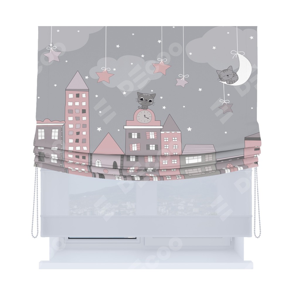 Римская штора «Кортин», день-ночь с мягкими складками, «Вечерний город»
