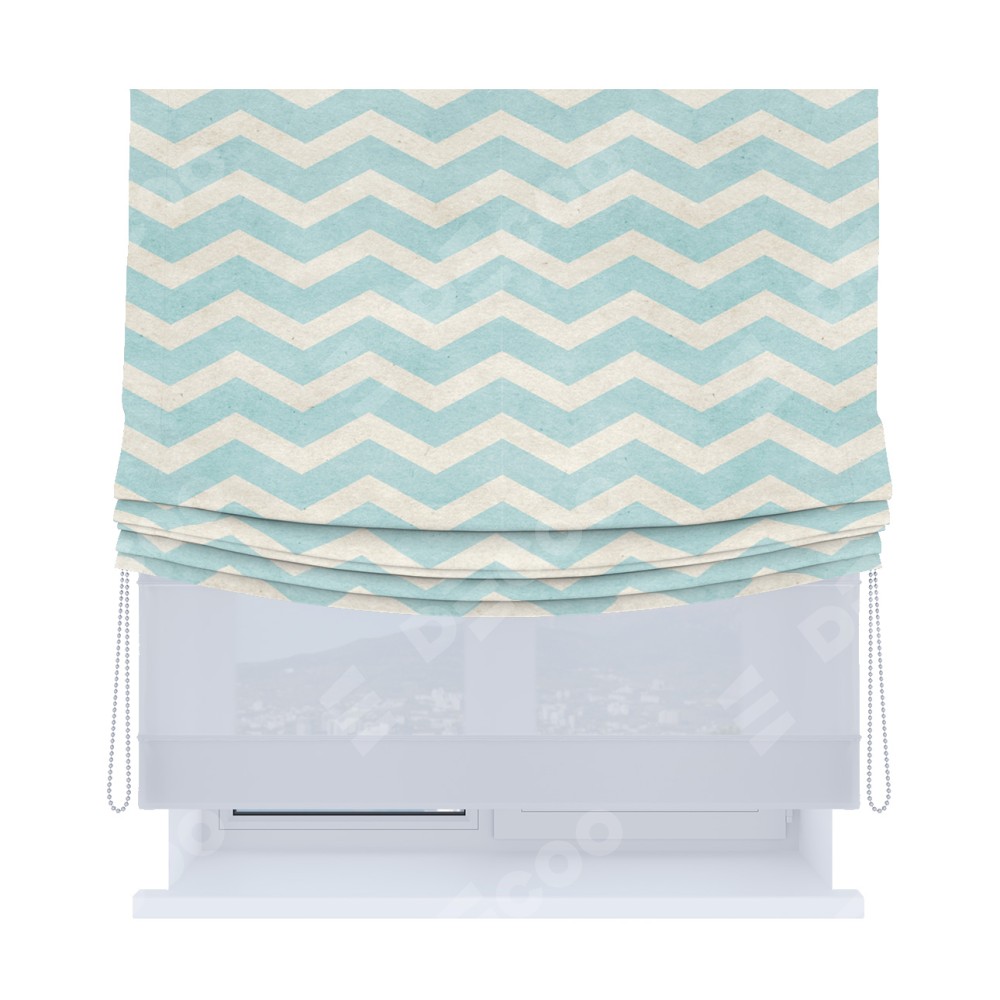 Римская штора «Кортин», день-ночь с мягкими складками, «Голубой шеврон»