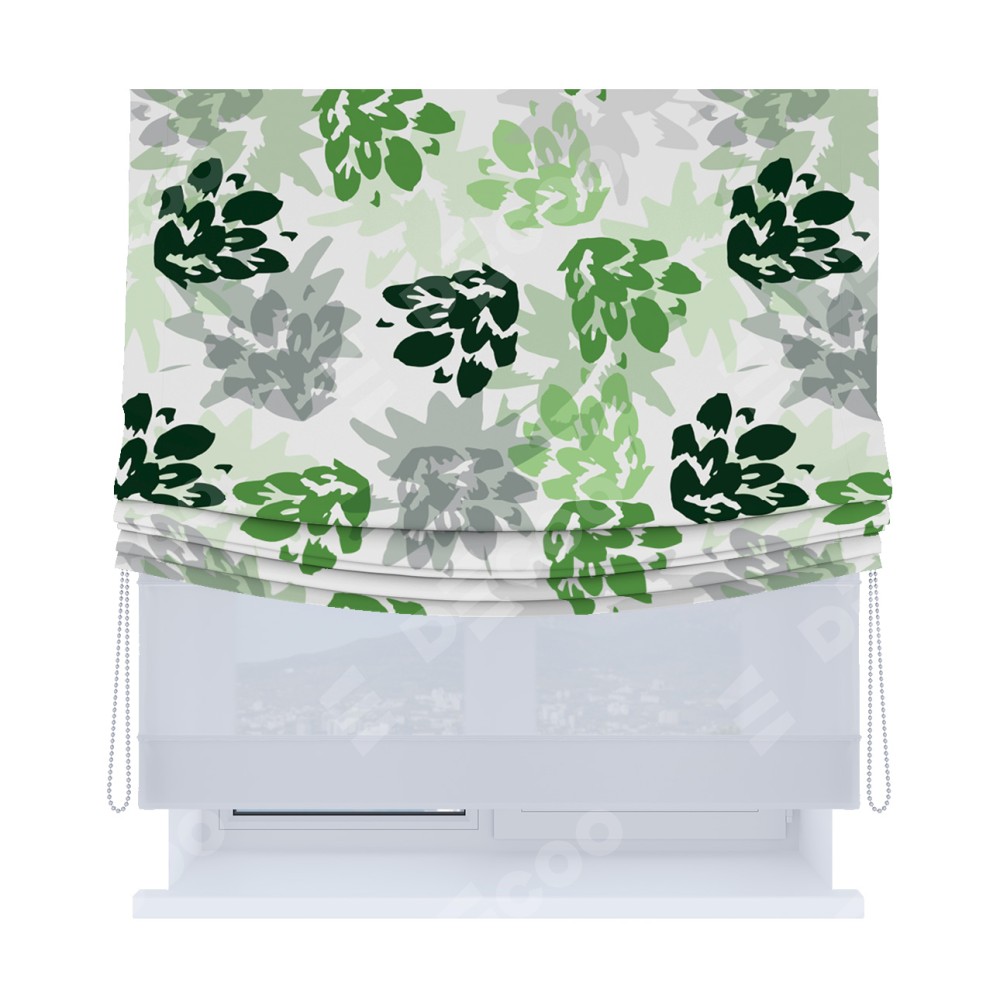Римская штора «Кортин», день-ночь с мягкими складками, «Зелёный луг»