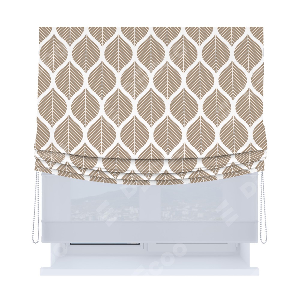 Римская штора «Кортин», день-ночь с мягкими складками, «Листья геометрия»