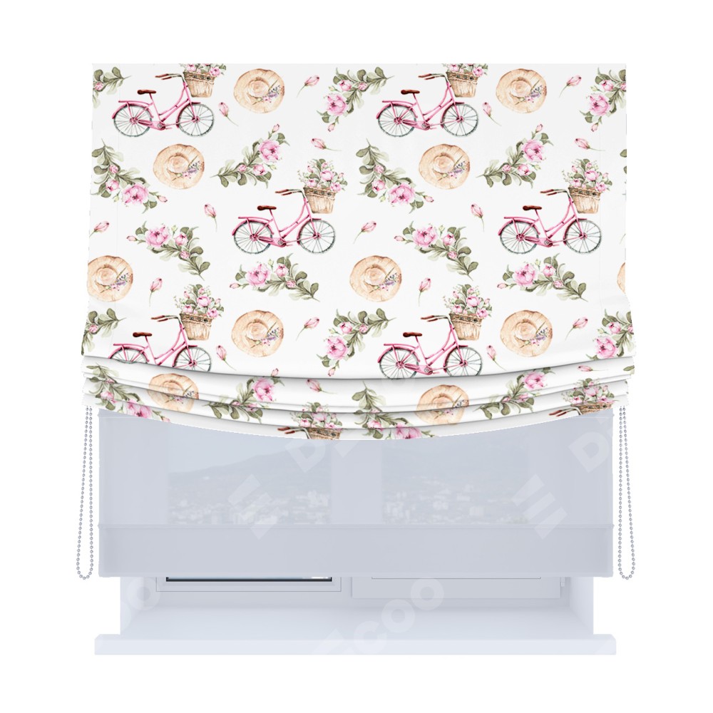 Римская штора «Кортин», день-ночь с мягкими складками, «Розовый велосипед»