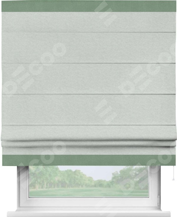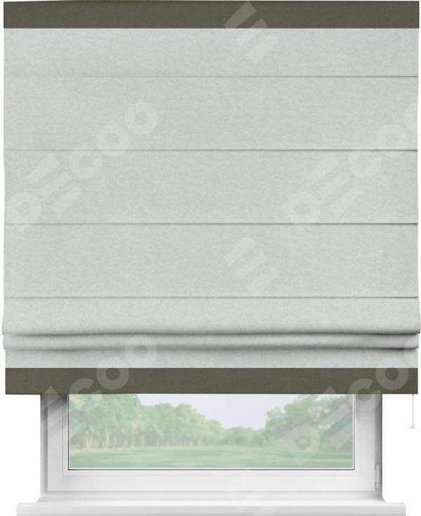 Римская штора производителя «Cortin», используется для проёма, пошита из ткани лён блэкаут белый, артикул 69451. Отделка шторы кантом «Горизонт», ткань для канта используется из льна разной расцветки на выбор. Имеет универсальный механизм и подходит для монтажа: на потолок, на стену и в нишу.
