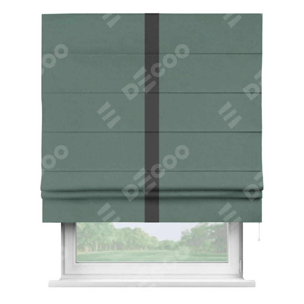Римская штора «Кортин» с кантом Хайвэй, для проема, лён блэкаут бирюзовый