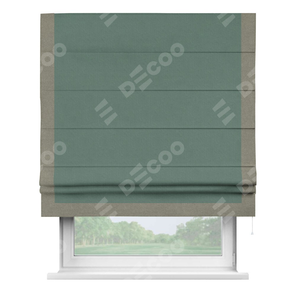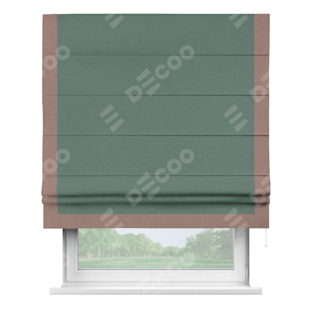 Римская штора «Кортин» с кантом Виктория, для проема, лён блэкаут бирюзовый