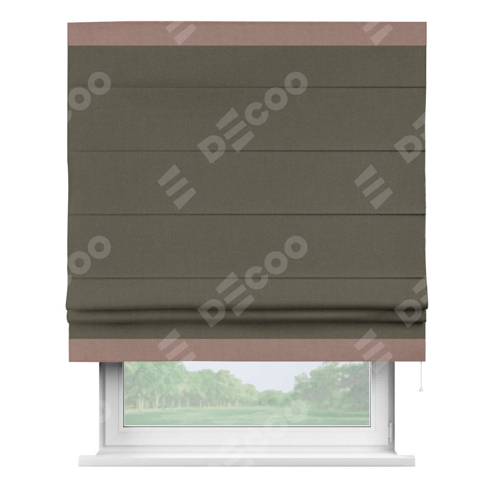 Римская штора «Кортин» с кантом Горизонт, для проема, лён блэкаут коричневый