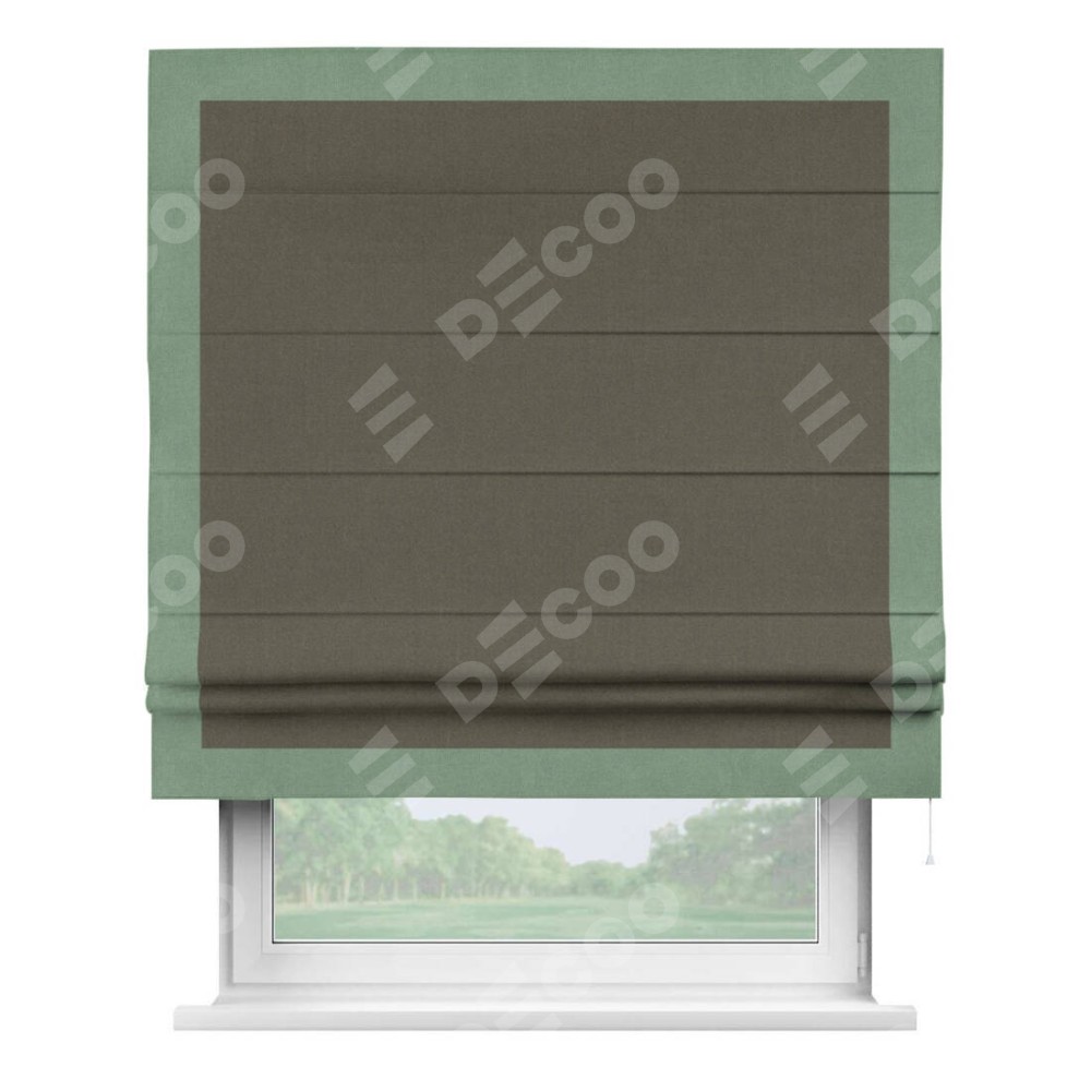 Римская штора «Кортин» с кантом Чесс, для проема, лён блэкаут коричневый