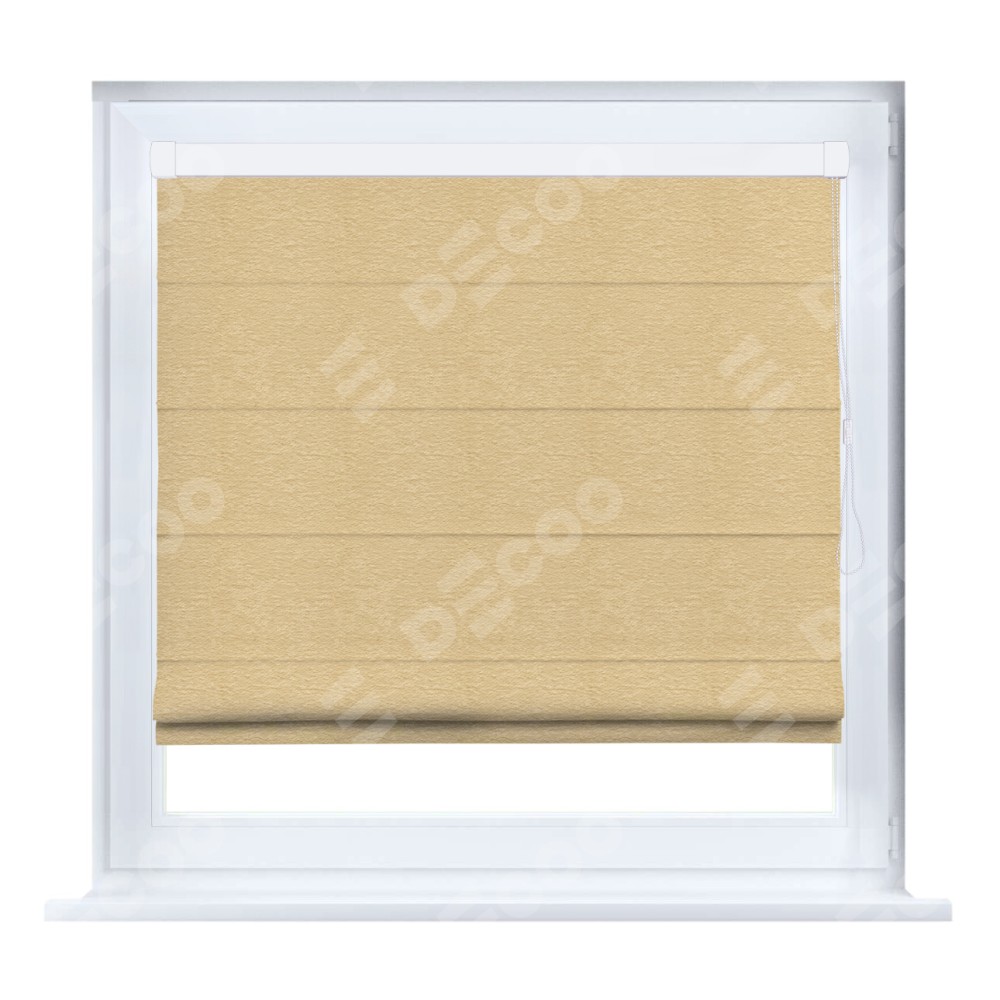 Римская штора кассетного типа, производителя «Cortin», устанавливается только на пластиковые окна и прилегает к стеклопакету, пошита из ткани софт однотонный бежевый, артикул 4202 05.
