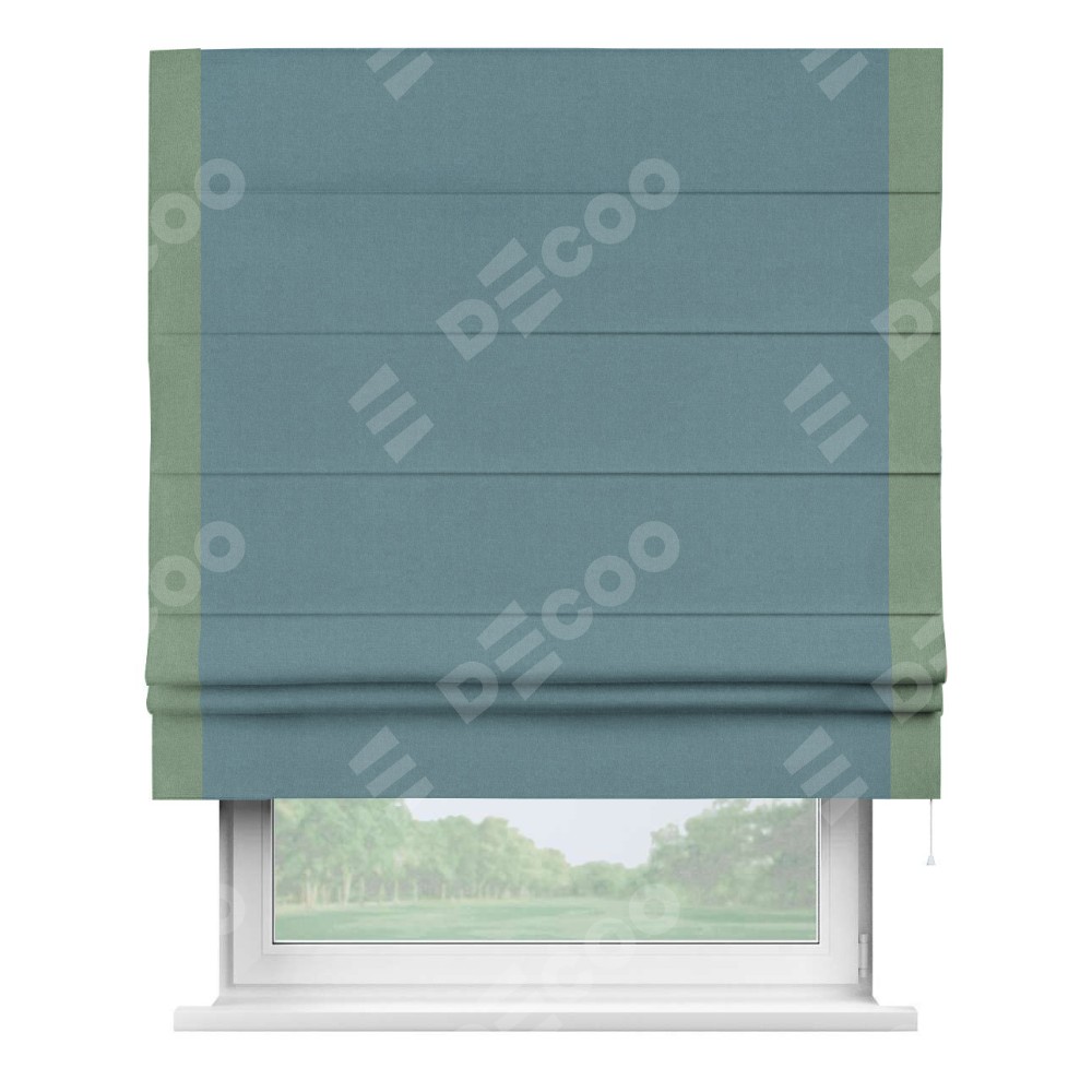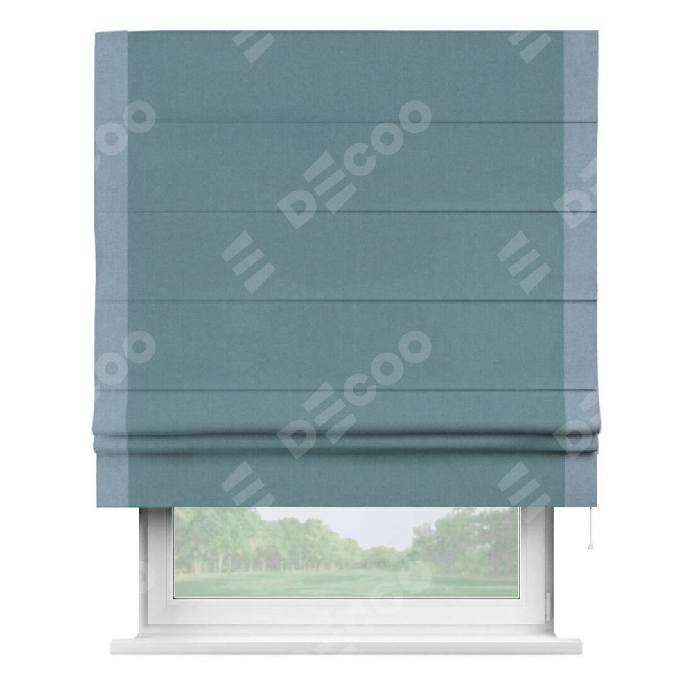 Римская штора «Кортин» с кантом Стрим Дуо, для проема, лён блэкаут синий