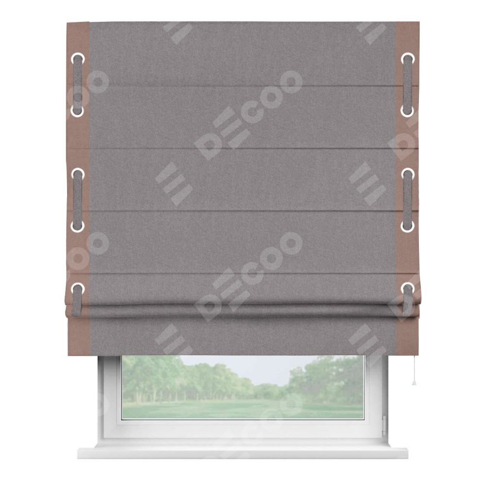 Римская штора «Кортин» с кантом Стрим Дуо (люверсы с пояском), для проема, лён блэкаут сиреневый