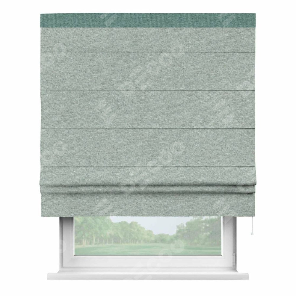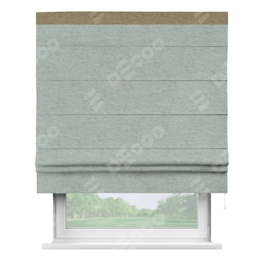Римская штора производителя «Cortin», используется для проёма, пошита из ткани стиф димаут светло-серый, артикул 44025. Отделка шторы кантом «Кинг», ткань для канта используется из стифа разной расцветки на выбор. Имеет универсальный механизм и подходит для монтажа: на потолок, на стену и в нишу.