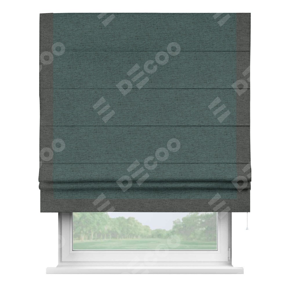 Римская штора «Кортин» с кантом Виктория, для проема, ткань стиф димаут сине-зелёный