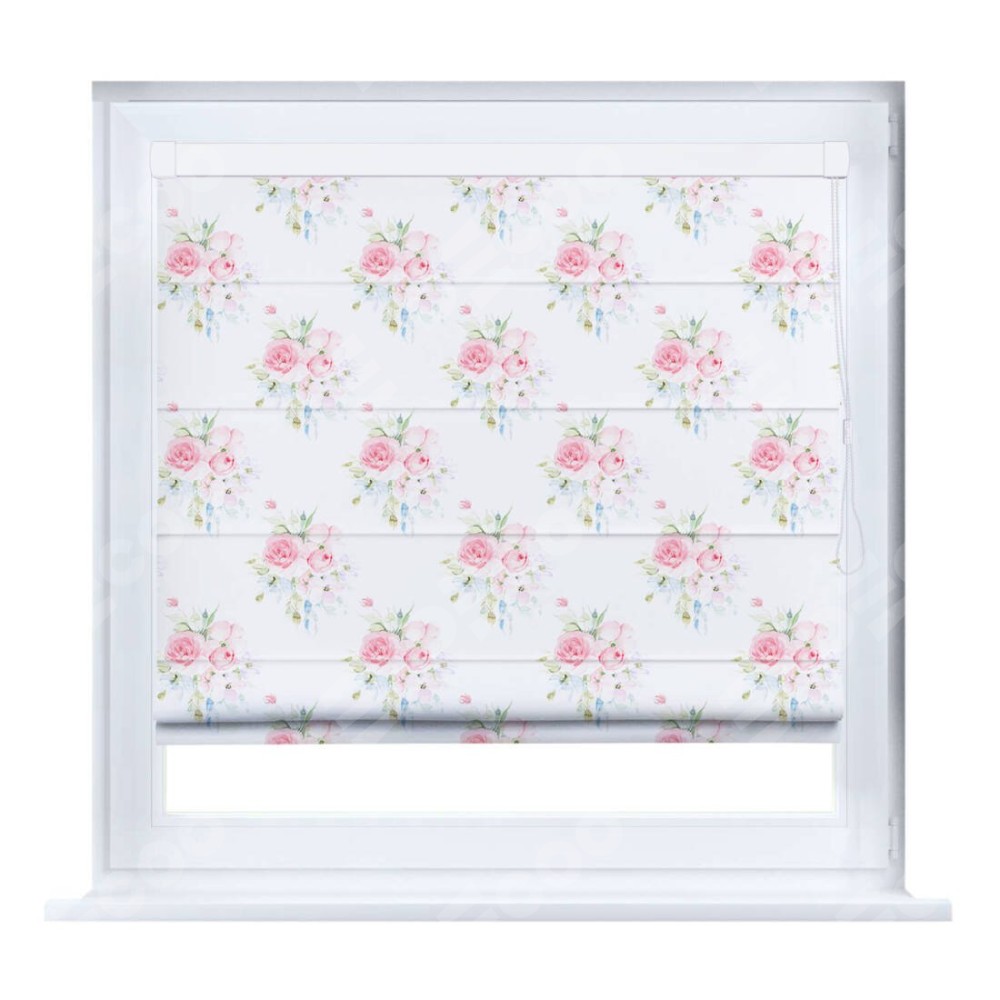 Римская штора производителя «Cortin», устанавливается на створку окна, пошита из ткани блэкаут с нанесением сублимационной печати «Нежный розарий». Штора шьётся по индивидуальным размерам, для данного типа римской шторы возможная ширина от 35 до 150 см., высота до 250 см.
